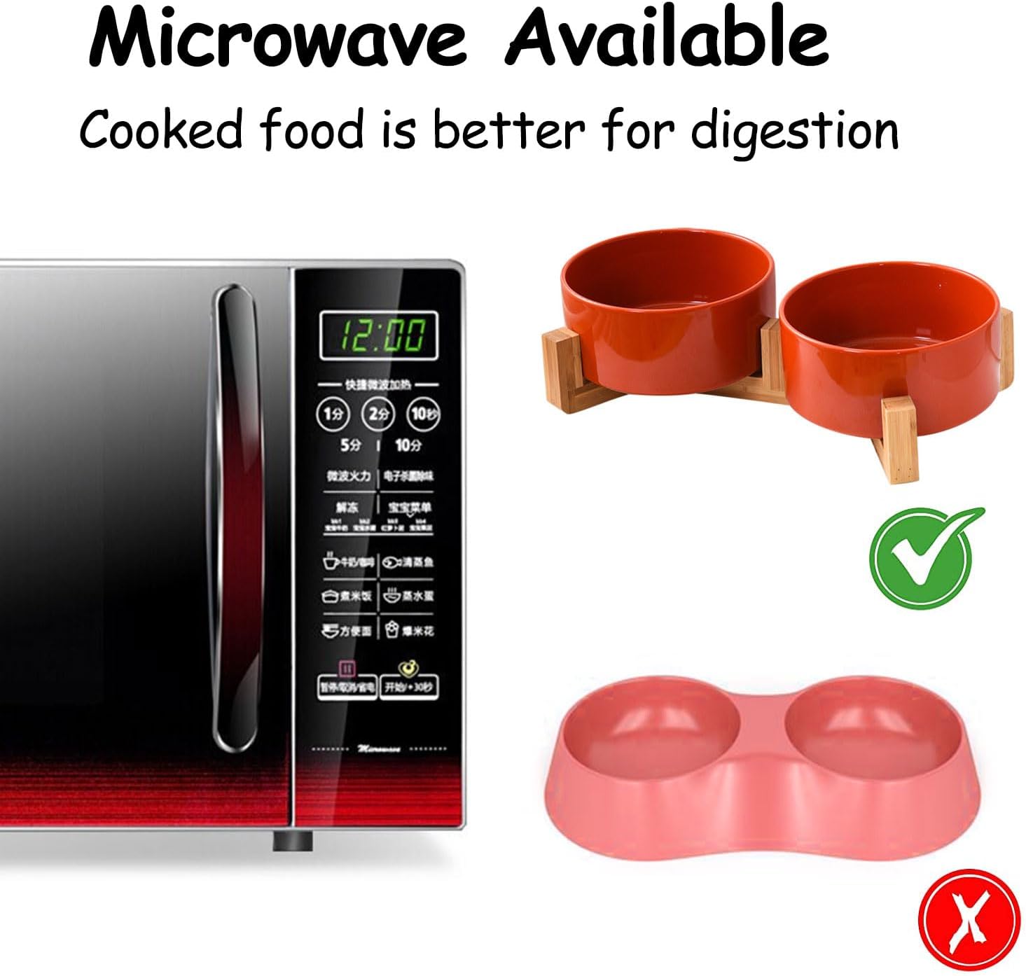 • Non Slip Stand: the wooden stand on the dog food bowl is sturdy and heavy enough and do not slide easily, even the naughty dog cat can't flip it over, cutting down drastically on making a mess.