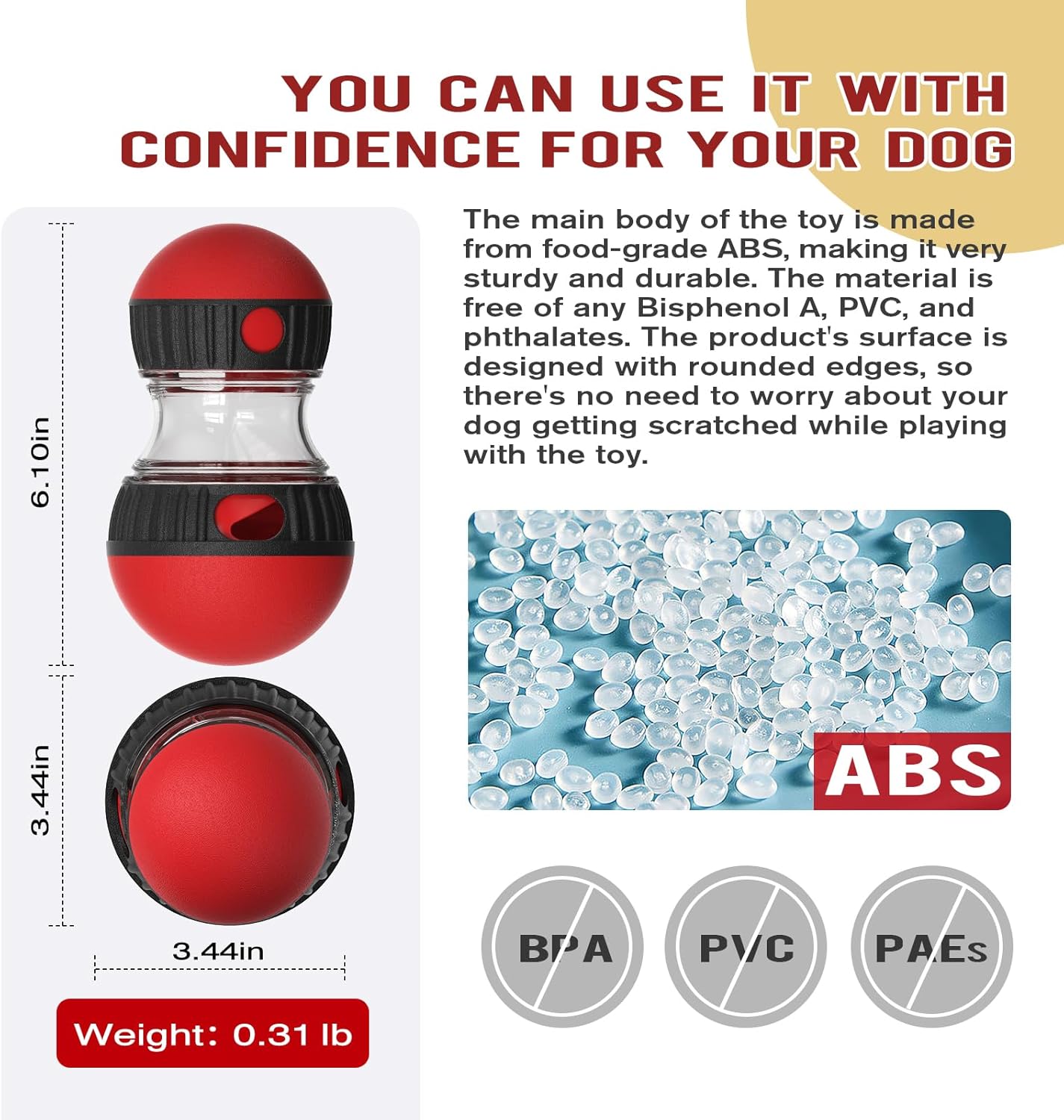• [Attract Dogs' Attention] With barbell shaped design and bright color, the dog puzzle toy ball can attract your dog's attention, stimulate their curiosity and drive them crazy to roll it. Size: 6.1*3.44*3.44in/15.5*8.7*8.7cm.