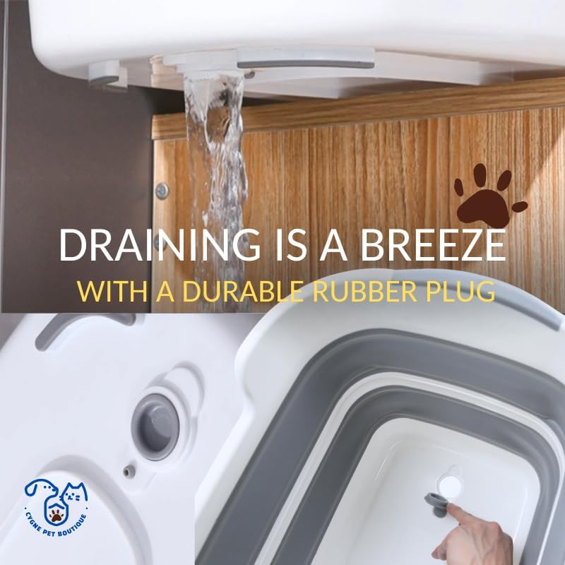 CYGNE Dog Bath Tub with Water Drain Plug, Collapsible Bathtub for Dog Washing and Grooming, Portable Foldable Space Saving Design for Pet Puppy Small Dogs Cats, BPA Free, Gray