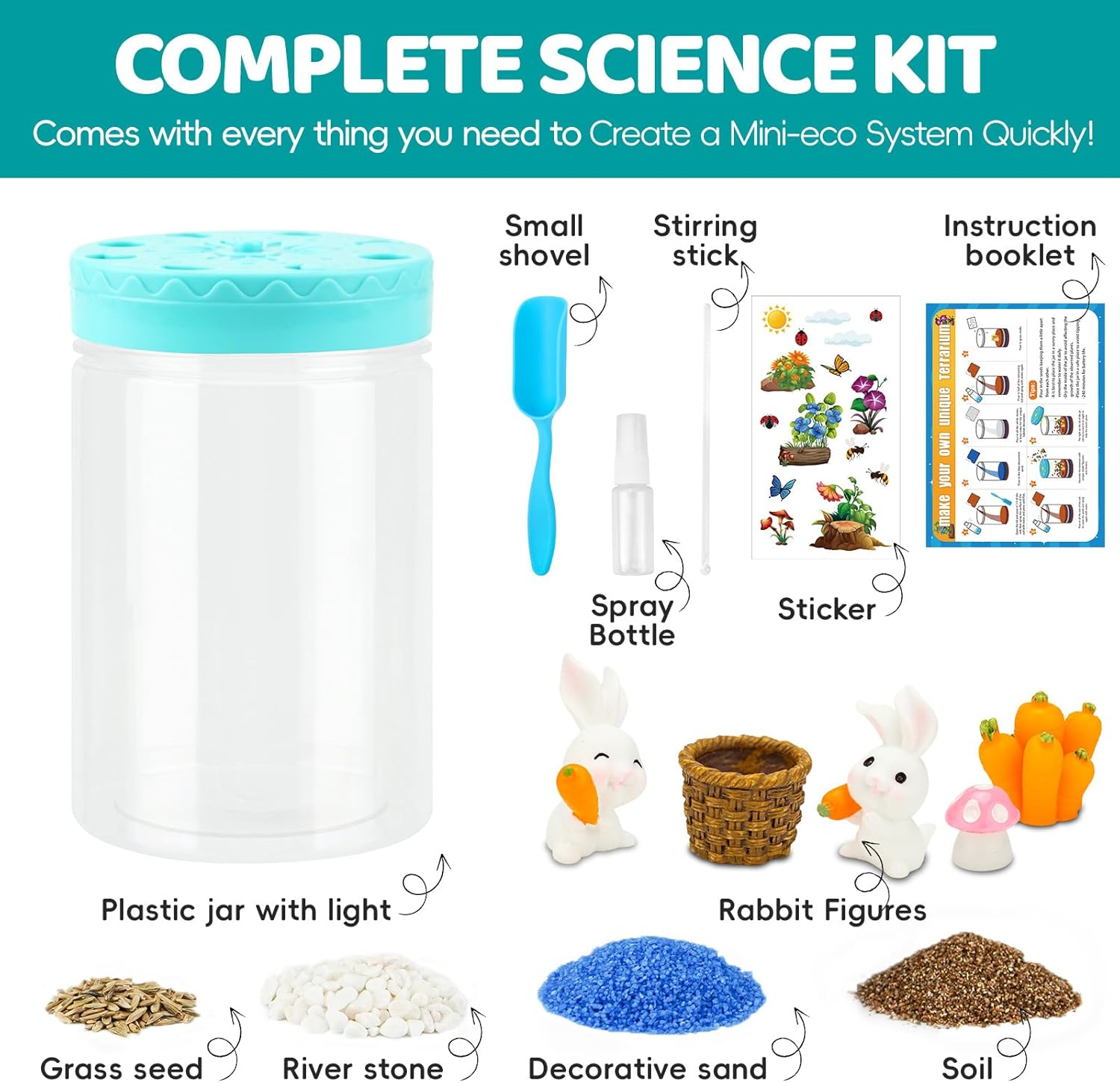 Easter Light Up Bunny Terrarium Kit for Kids,Rabbit Gardening Kit for Boys Girls,DIY Creative STEM Science Kits Educational Toy, Arts Crafts Activity, Birthday Gifts for Ages 4 5 6 7 8-12