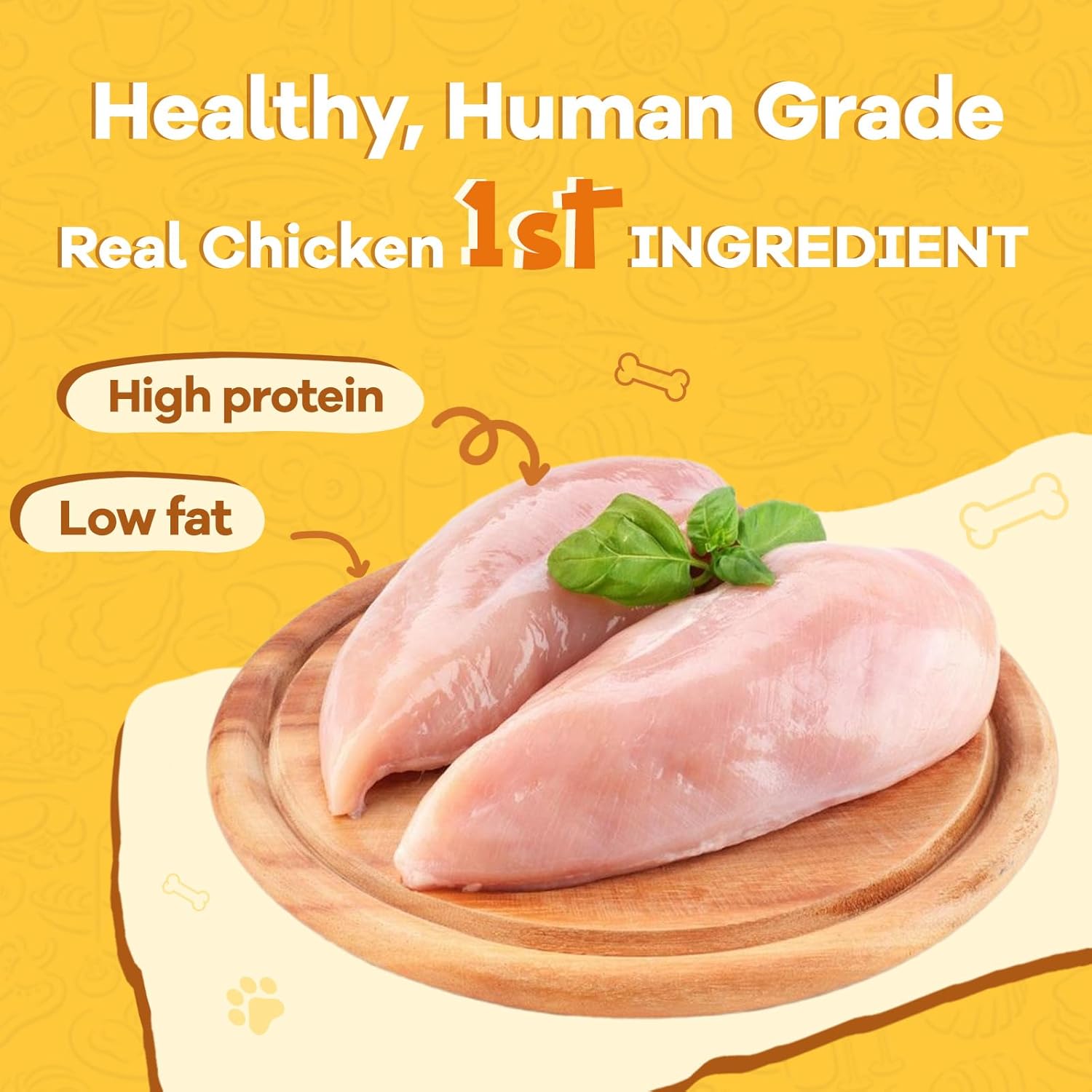 • 100% CHICKEN MEAT: The newly upgraded bag package has a larger capacity to meet all pet needs.These chicken jerky strip treats are entirely free from additives and preservatives, providing just the pure, natural goodness your pet loves. Made with gluten-free ingredients, they're a healthy dog snack choice