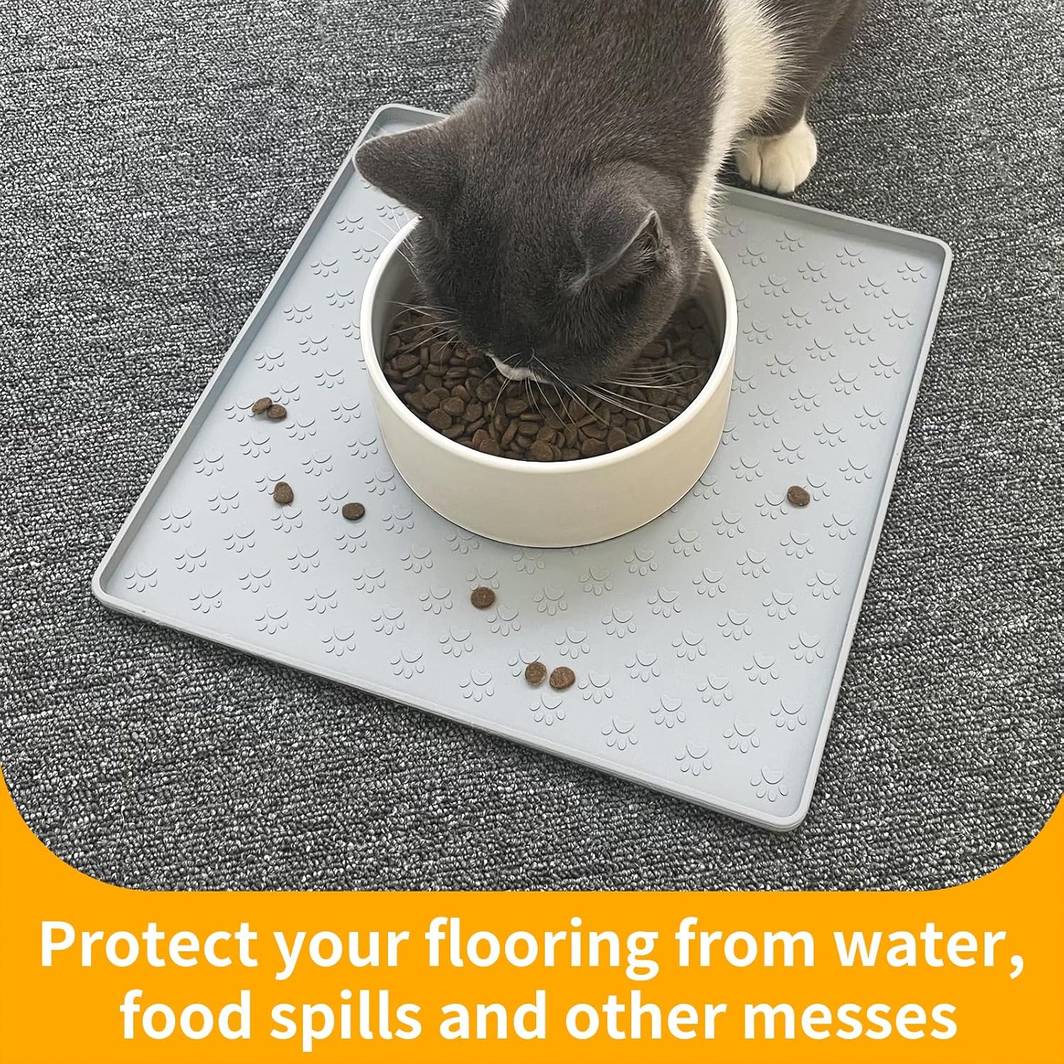 • Versatile Usage: This extra-large dog feeder mat accommodates various types of bowls and pet supplies - mats under dog food and water bowls, cat fountain, feeder stations and litter boxes for messy proof. Pet placemats are suitable for all breeds of cats, dogs, puppies and other animals.