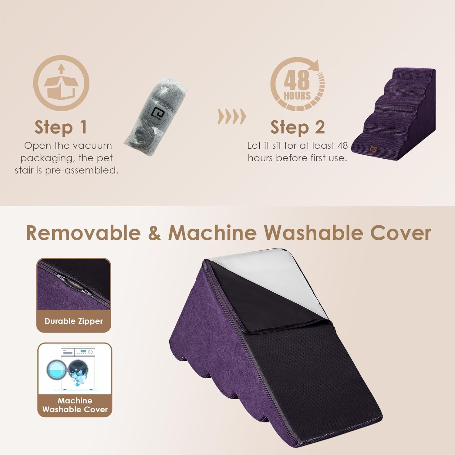 • COMFORTABLE PET STAIRS - This foam dog stair is designed directly against the edge of a bed, sofa or other furniture, so your pet can climb up and down comfortably.