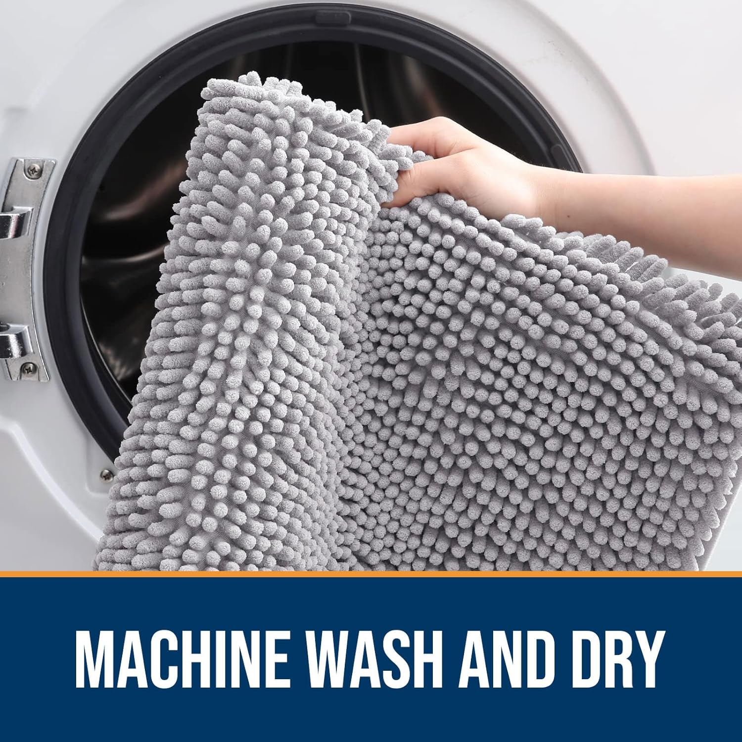 OLANLY Dog Door Mat for Muddy Paws 47x32, Absorbs Moisture and Dirt, Absorbent Non-Slip Washable Doormat, Quick Dry Chenille Mud Mat for Dogs, Entry Indoor Entryway Carpet for Inside Floor, Light Grey