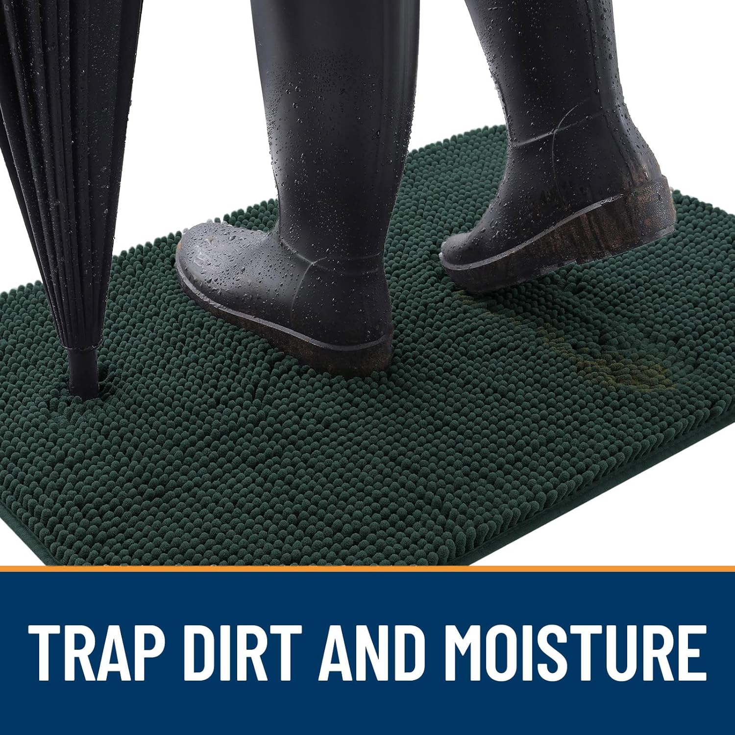 OLANLY Dog Door Mat for Muddy Paws 47x32, Absorbs Moisture and Dirt, Absorbent Non-Slip Washable Doormat, Quick Dry Chenille Mud Mat, Entry Indoor Entryway Carpet for Inside Floor, Blackish Green
