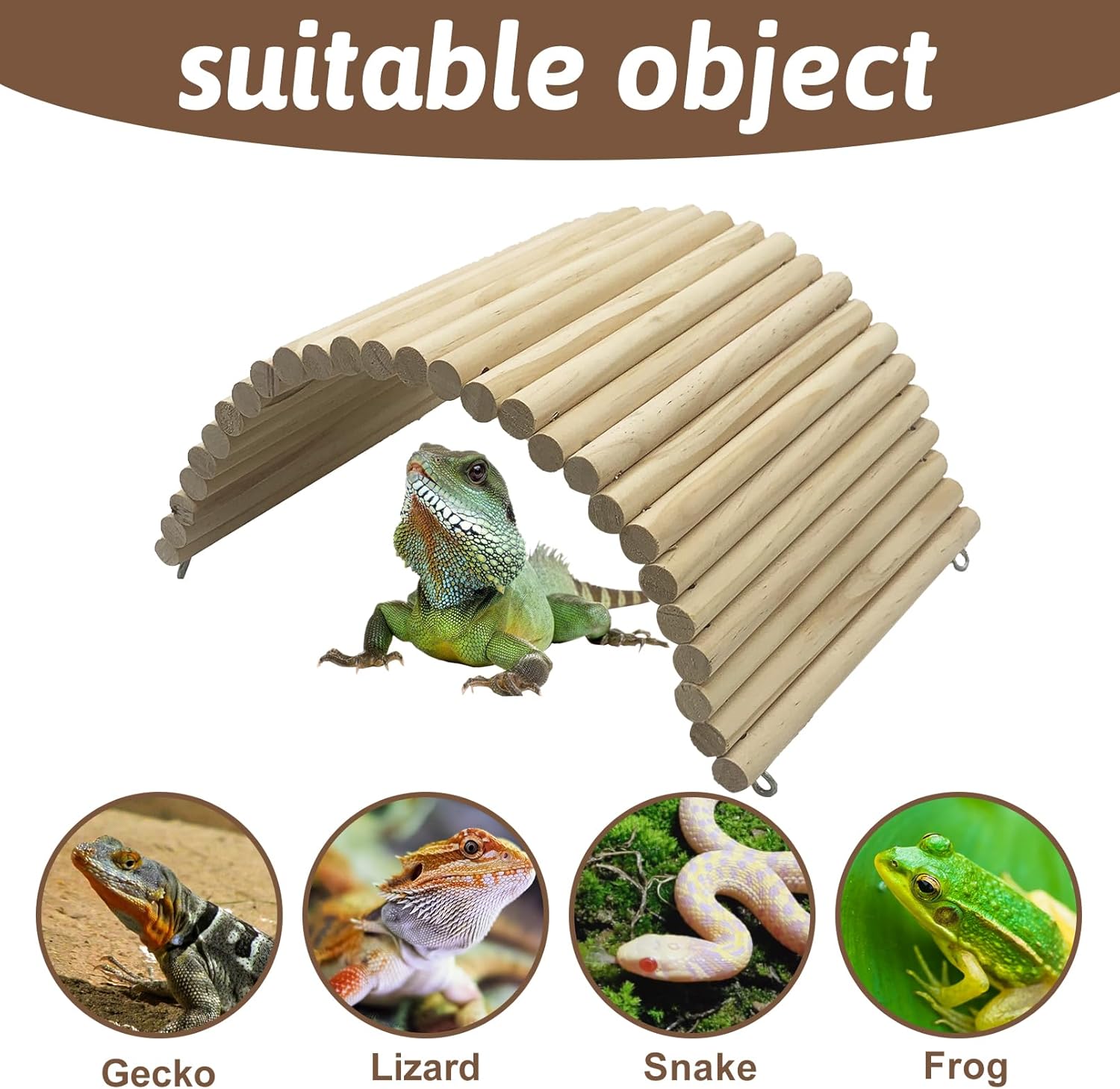 Hamiledyi 15.66 x 7.8 Inches Wooden Reptile Hideout Bearded Dragon Bendy Bridge Climbing Ladder Hiding Hut Reptiles Hide Cave Habitat Decor for Lizards Gecko Spiders Snakes Tortoise