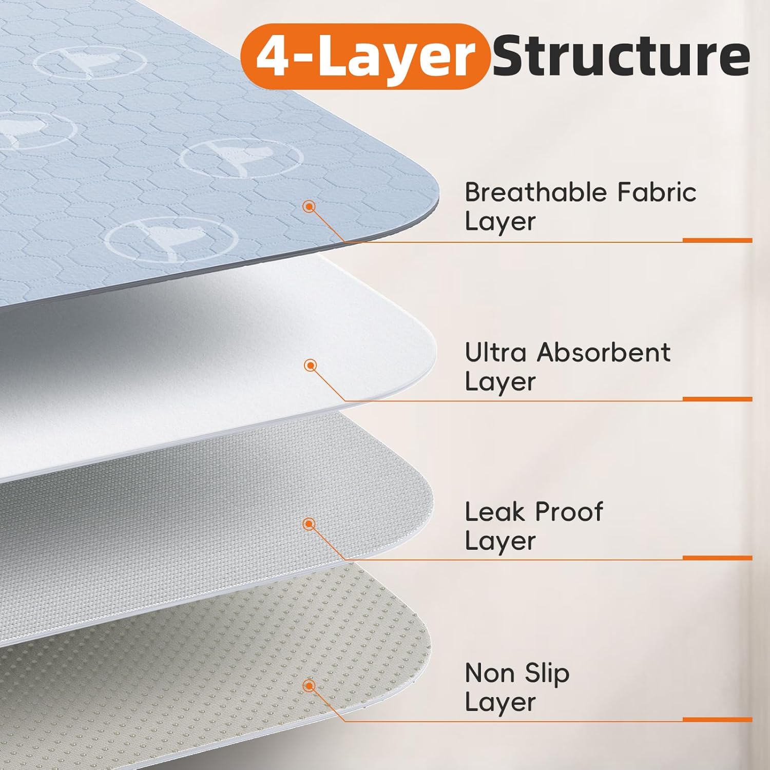 • 4-Layer Protection System: Breathable top layer guides liquid to the 10 mins quick-dry core, leak-proof barrier prevents seepage, and non-slip base stays in place. Shield floors, furniture, and car interiors from accidents