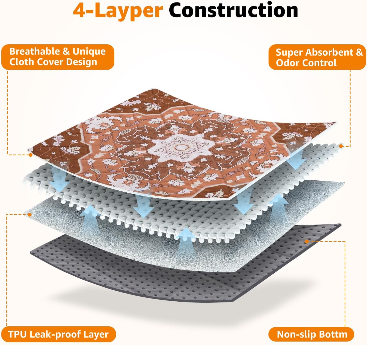 • STYLISH DOG PADS: Our Bohemian style reusable puppy pads not only ensure reliable floor protection, but they also add a touch of style to your home. They seamlessly blend with your interior decor, providing a comfy, safe spot for your furry friend’s activities or relaxation