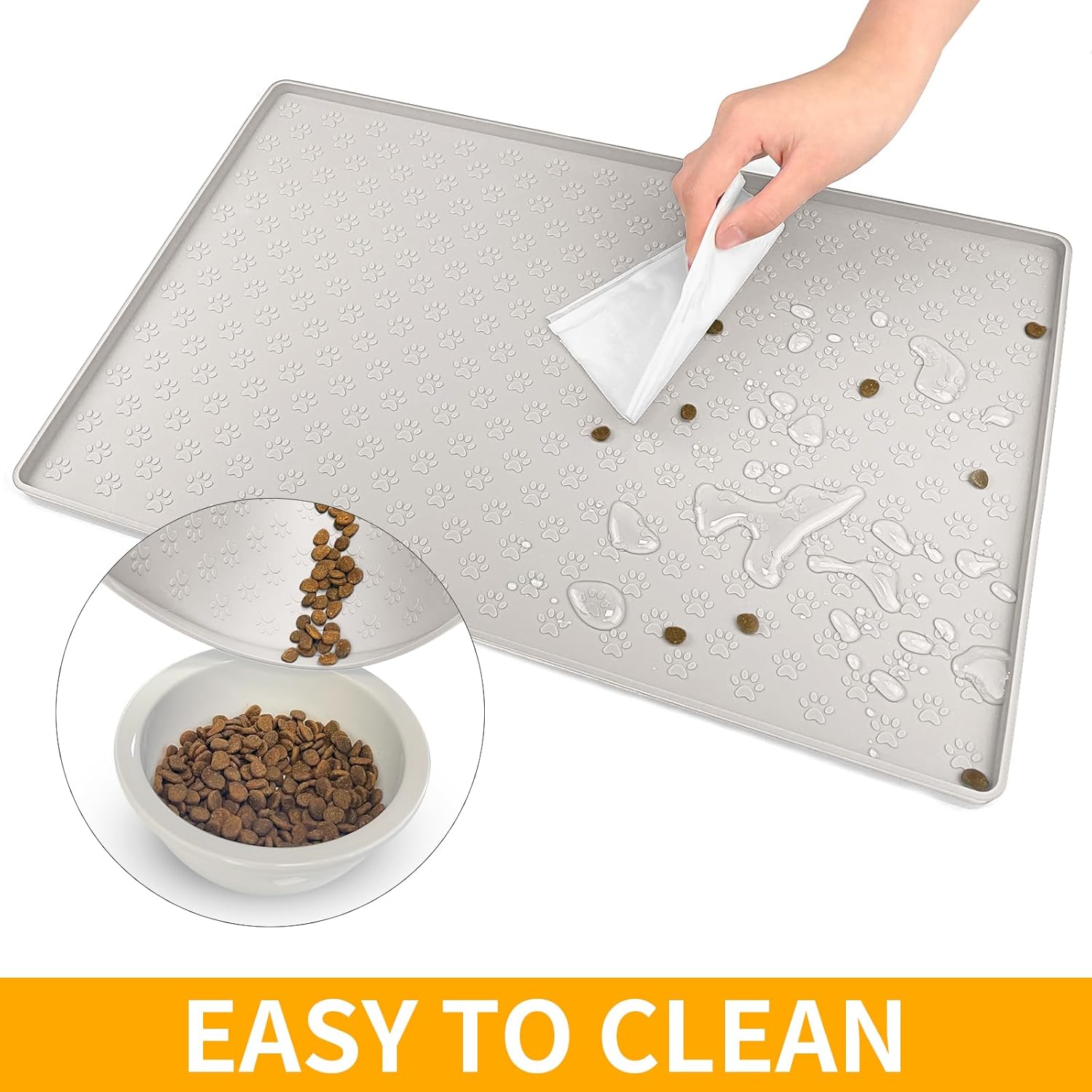 • Versatile Usage: This extra-large dog feeder mat accommodates various types of bowls and pet supplies - mats under dog food and water bowls, cat fountain, feeder stations and litter boxes for messy proof. Pet placemats are suitable for all breeds of cats, dogs, puppies and other animals.