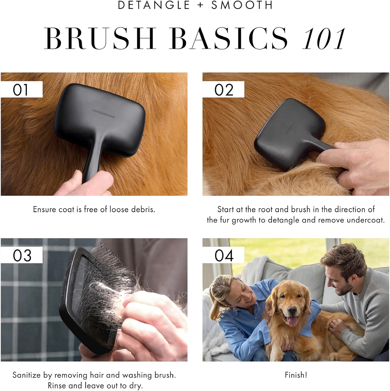 • HOW TO USE: Ensure coat is free of loose debris. Section your pet's fur and starting at the roots, gently brush through to detangle, remove undercoat and style, brushing in the direction of the fur.