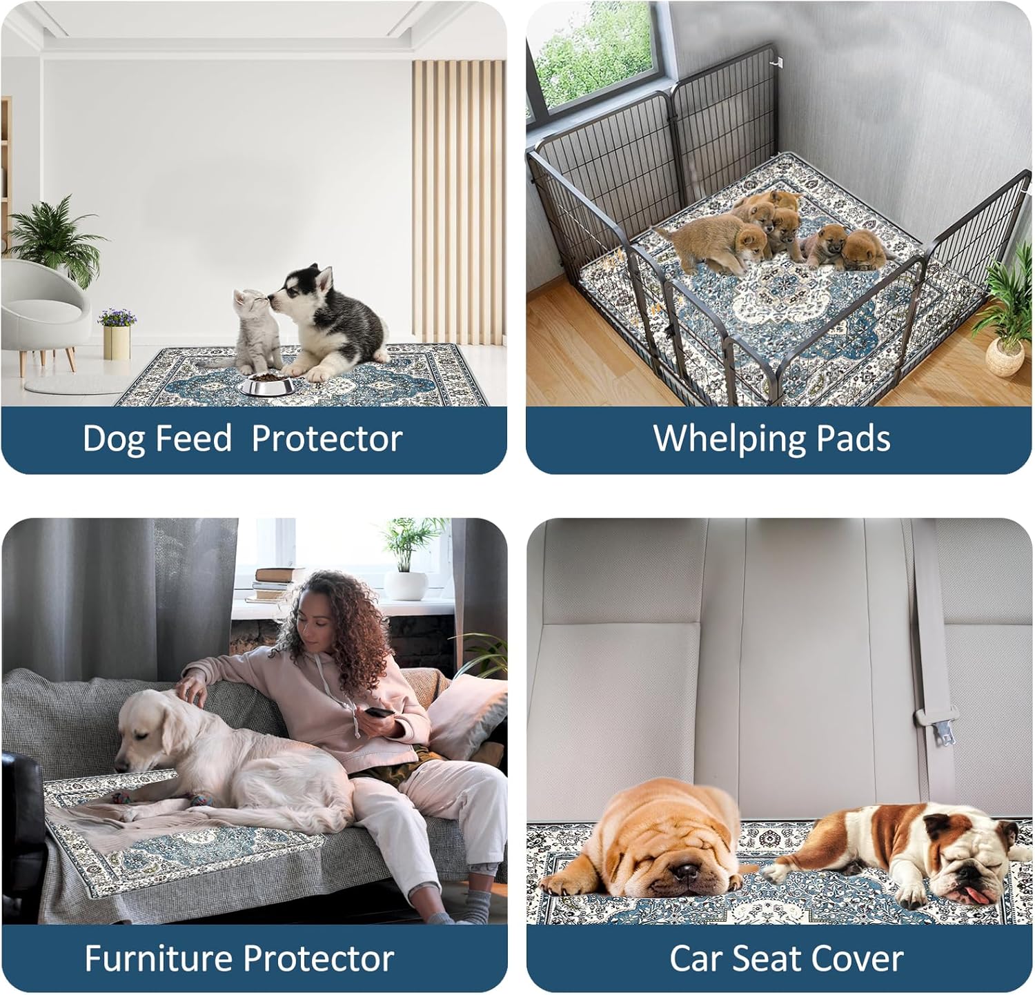 Washable Pee Pads for Dogs, (2 Pack, 36"x42") Upgrade Reusable Puppy Pads with Non-Slip Rug Pad, Super Thickening Absorbent Leakproof Dog Traning Pads Whelping Pad for Dogs, Doggie(Blue-1)