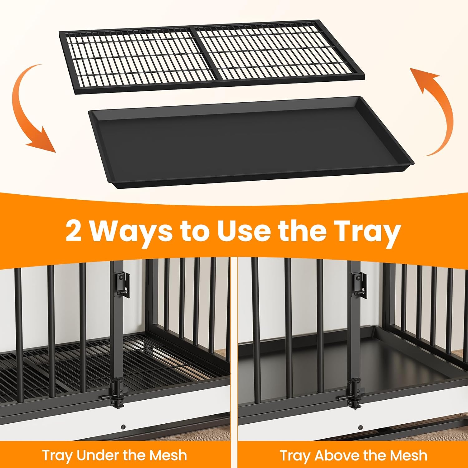 • 【Versatile Tray Usage】Put the tray under the bottom mesh to catch crumbs, fur, and dirt, keeping your dog's place clean without dirtying your floor, maintaining a tidy living space for your pet, or place the tray above the mesh to offer your dog a flat, comfortable surface—it's up to you
