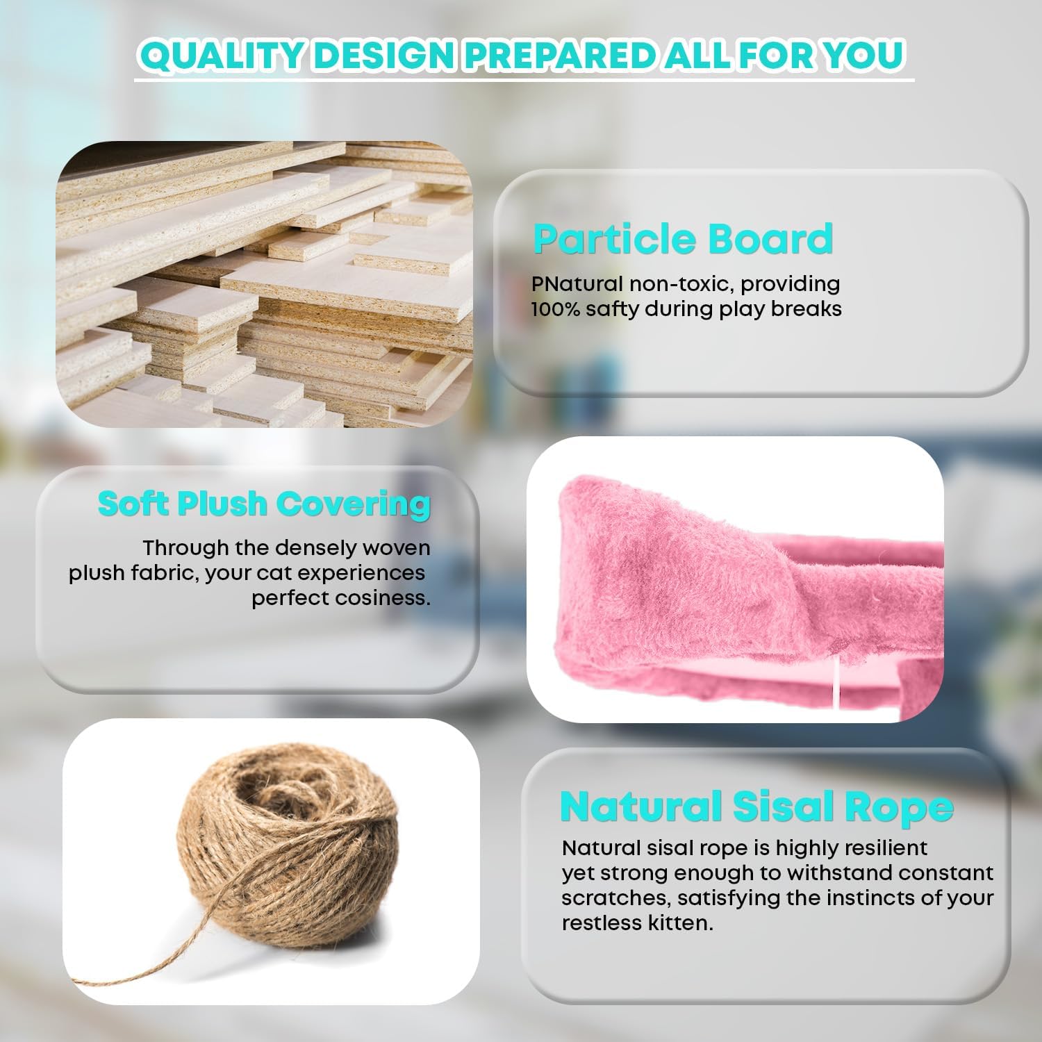 - Material : Particleboard, Plush, Sisal