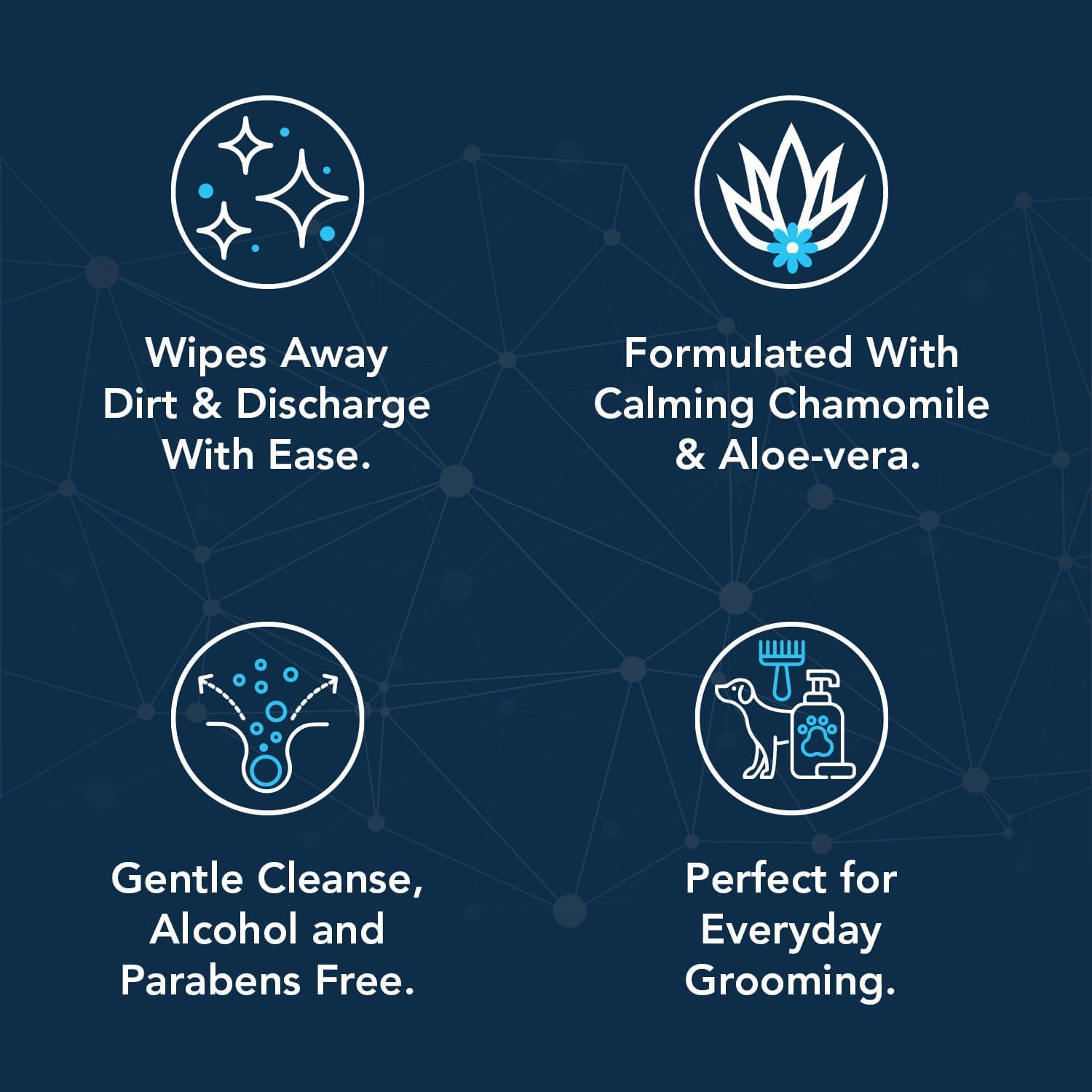 • REVITALIZES AND CLEANS - Infused with the calming power of chamomile and aloe vera, along with the goodness of Vitamins C and E, our wipes offer a refreshing cleanse for your dog's eye area, leaving them feeling refreshed and revitalized.
