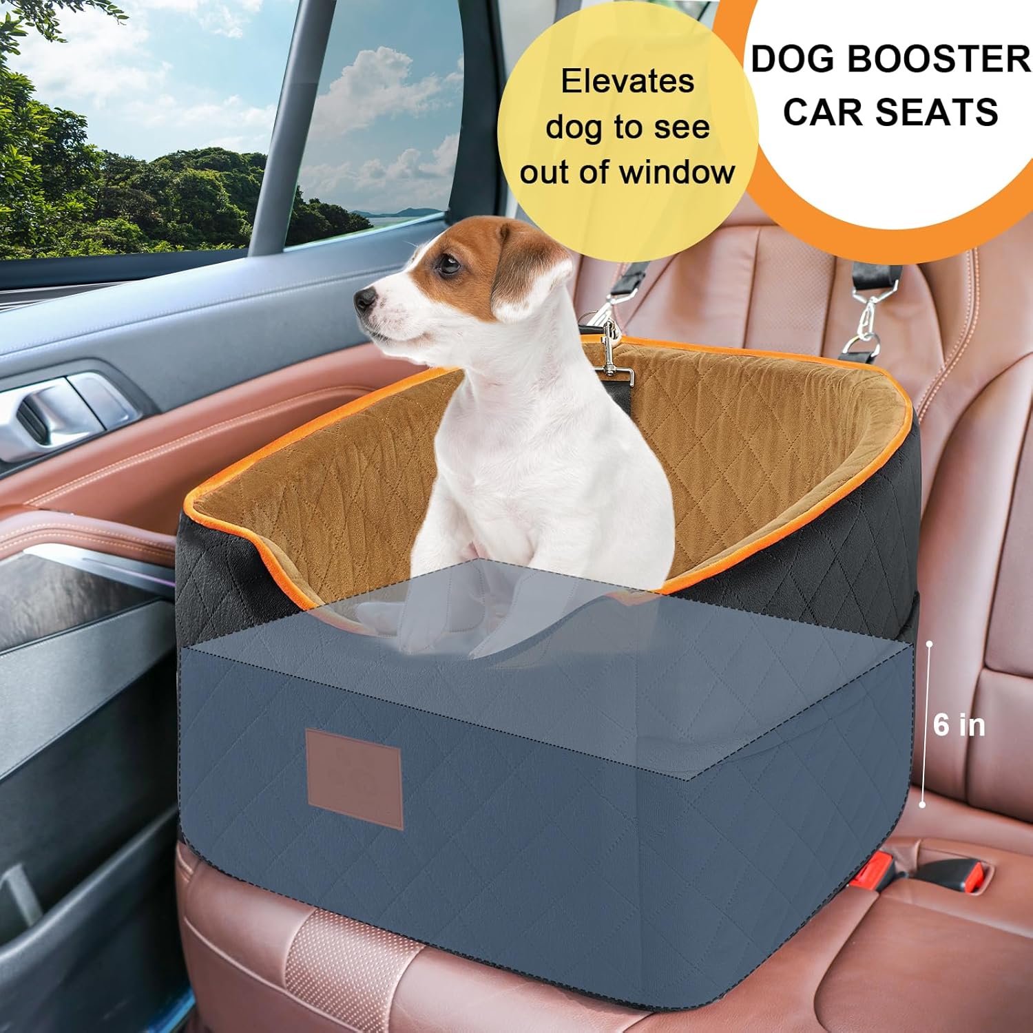 Dog Car Seat for Small Dogs, Memory Foam Booster Dog Seat for Dogs up to 35 lbs, Elevated Pet Car Seat with Washable Removable Cover, Storage Pockets