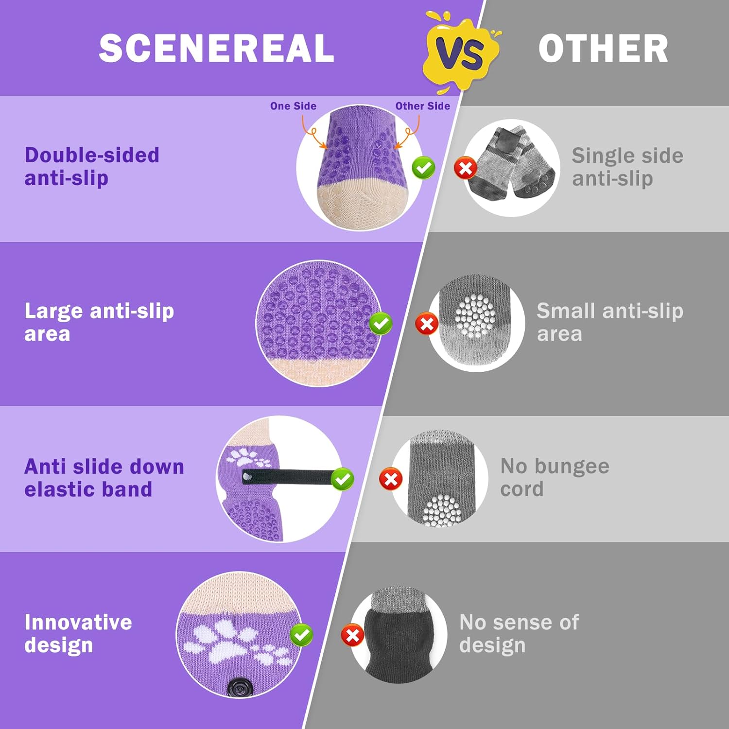 SCENEREAL Anti Slip Dog Sock to Prevent Licking Paws for Hardwood Floors, Boots & Paw Protector Shoes for Hot/Cold Pavement with Grippers, Double Sides Grips for Small Medium Large Senior Dogs, S