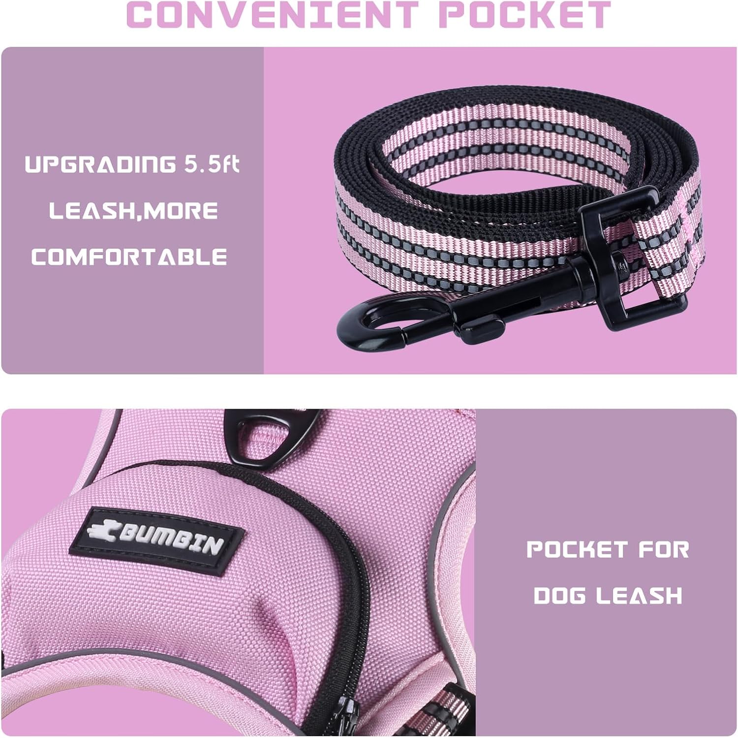 • 🐾COMFTY & SAFE DESIGN: Be the best partner of your pets.🐾 The Bumbin dog harness helps you walk, run and play with your dog together. The arc of the harness back is extended to ensure comfort without scratching the dog’s skin.