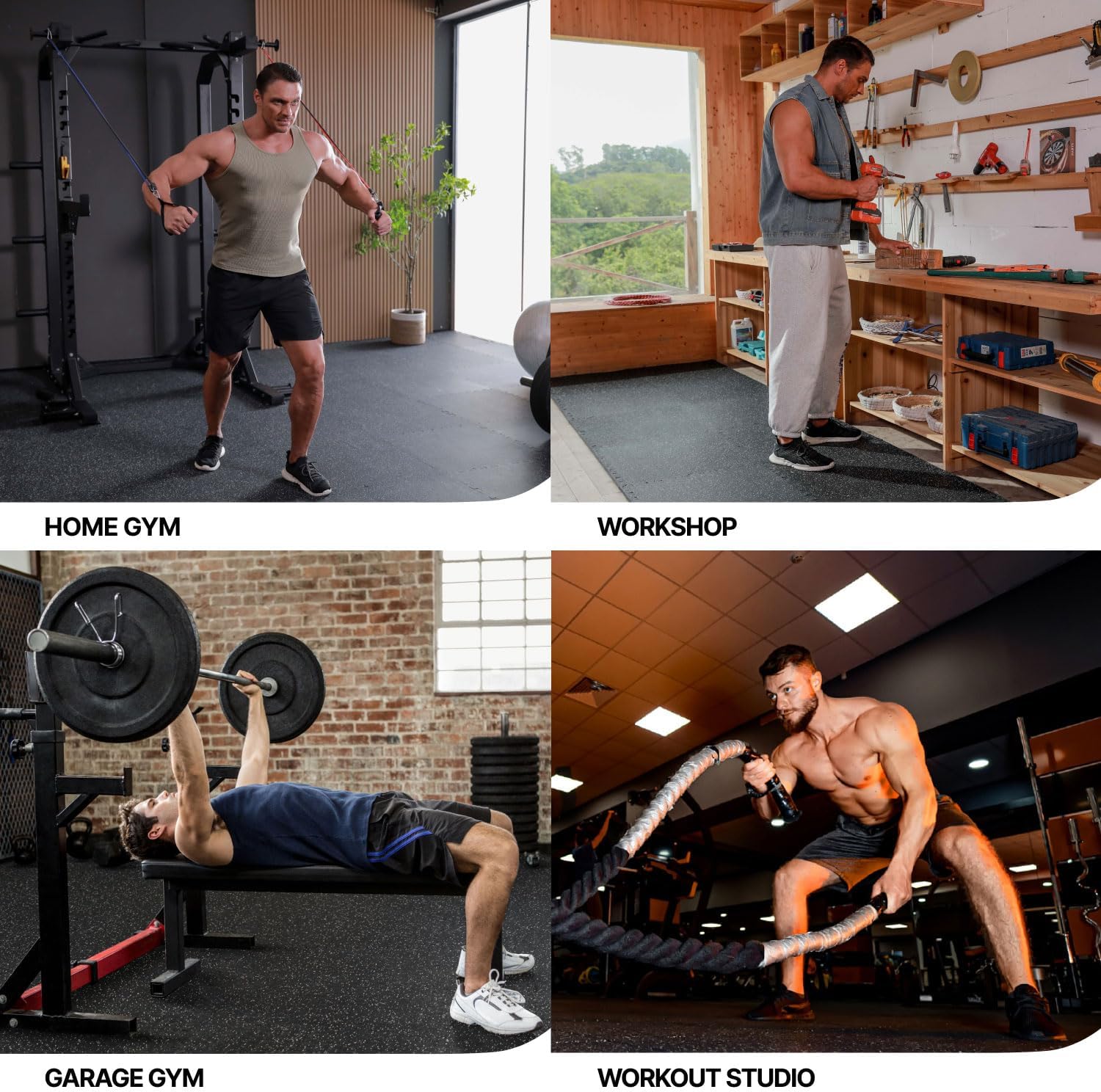 • [Effortless to Maintain]: Crafted from High-Density EVA Foam, these tiles minimize noise and vibration, allowing quiet and comfortable workouts. The waterproof feature makes cleaning a breeze with a damp cloth. Ideal for yoga, benches, workouts, treadmills, crossfit, kettlebells, cardio, and more.