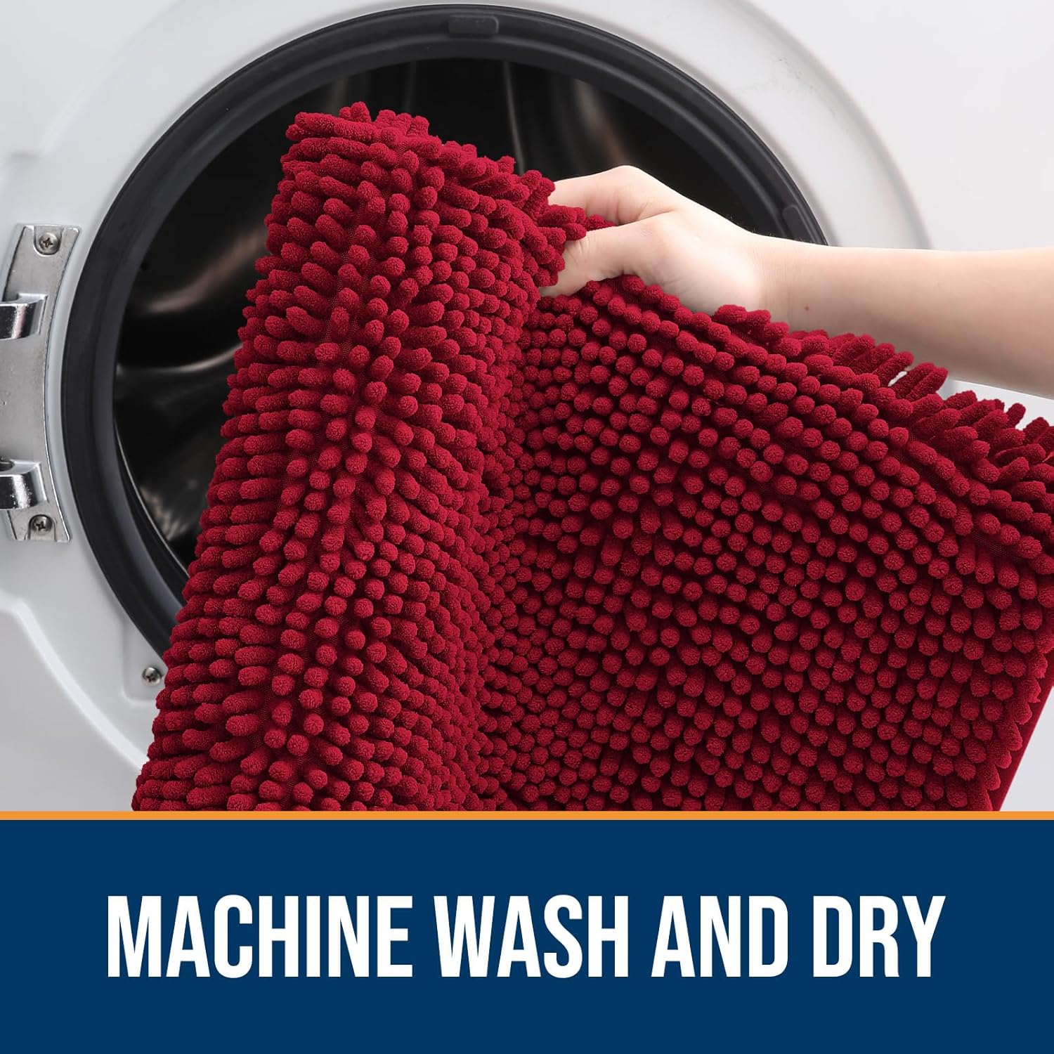OLANLY Dog Door Mat for Muddy Paws 24x16, Absorbs Moisture and Dirt, Absorbent Non-Slip Washable Doormat, Quick Dry Chenille Mud Mat for Dogs, Entry Indoor Entryway Carpet for Inside Floor, Red