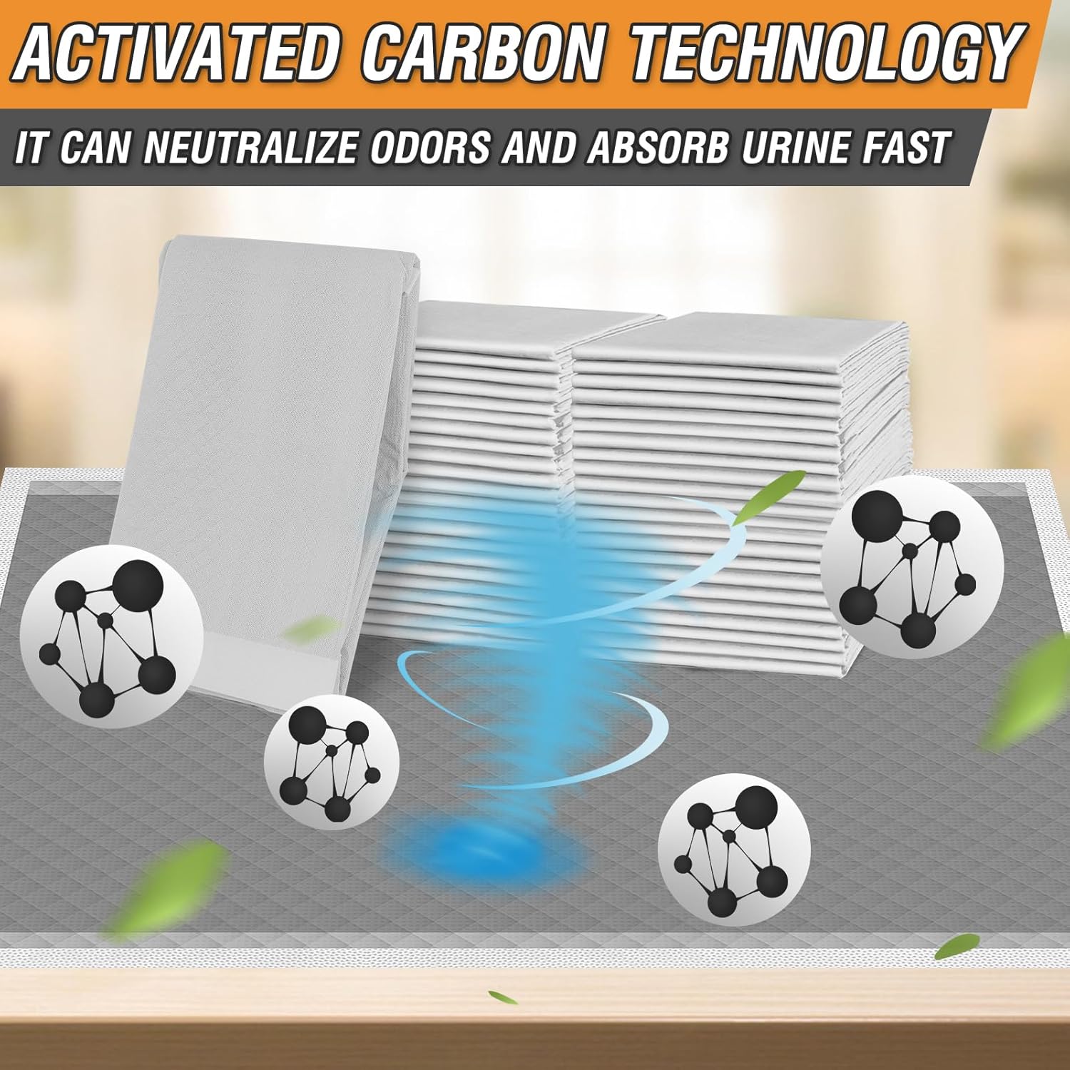 - Super Absorbent & Quick Drying: Our XL charcoal puppy pee pads use high-quality materials to make our thickened extra large dog pads much more absorbent than most wee wee pee pads for dogs on the market. The pet training pads use new premium material perforated film as the top layer of the dog potty pads which can speed up the liquid to pass through the surface than common non-woven fabric and keep the surface quick-drying, comfortable, with no puddling, and no tracking.