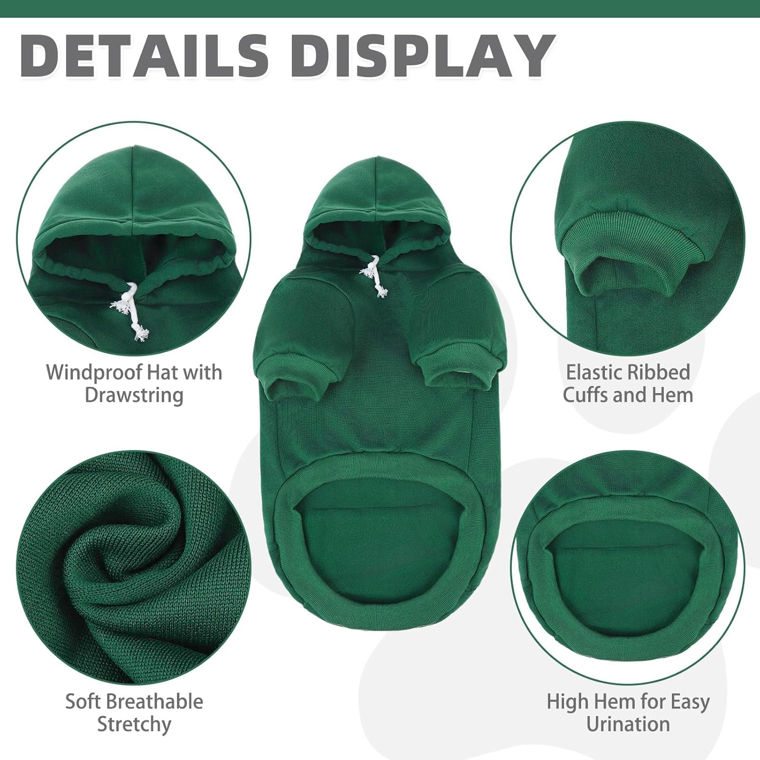 KOOLTAIL Basic Dog Hoodie - Soft & Warm Dog Hoodie Sweater with Leash Hole and Pocket, Dog Winter Coat, Cold Weather Clothes Sweatshirt for Small Medium Large Dogs Puppy Cat Boys Girls Deep Green L