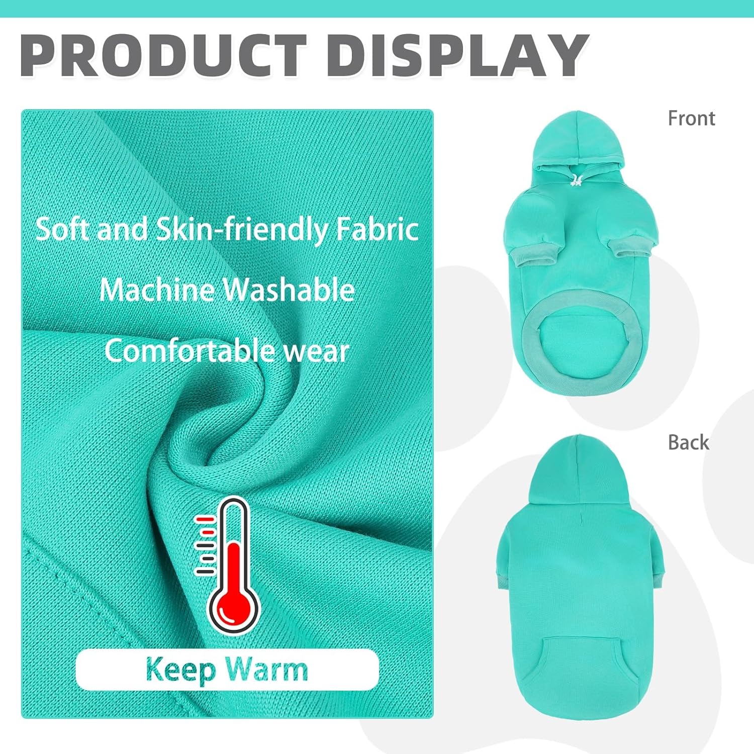 KOOLTAIL Basic Dog Hoodie - Soft and Warm Dog Hoodie Sweater with Leash Hole and Pocket, Dog Winter Coat, Cold Weather Clothes Sweatshirt for Small Medium Large Dogs Puppy Cat Boys Girls Lake Blue S