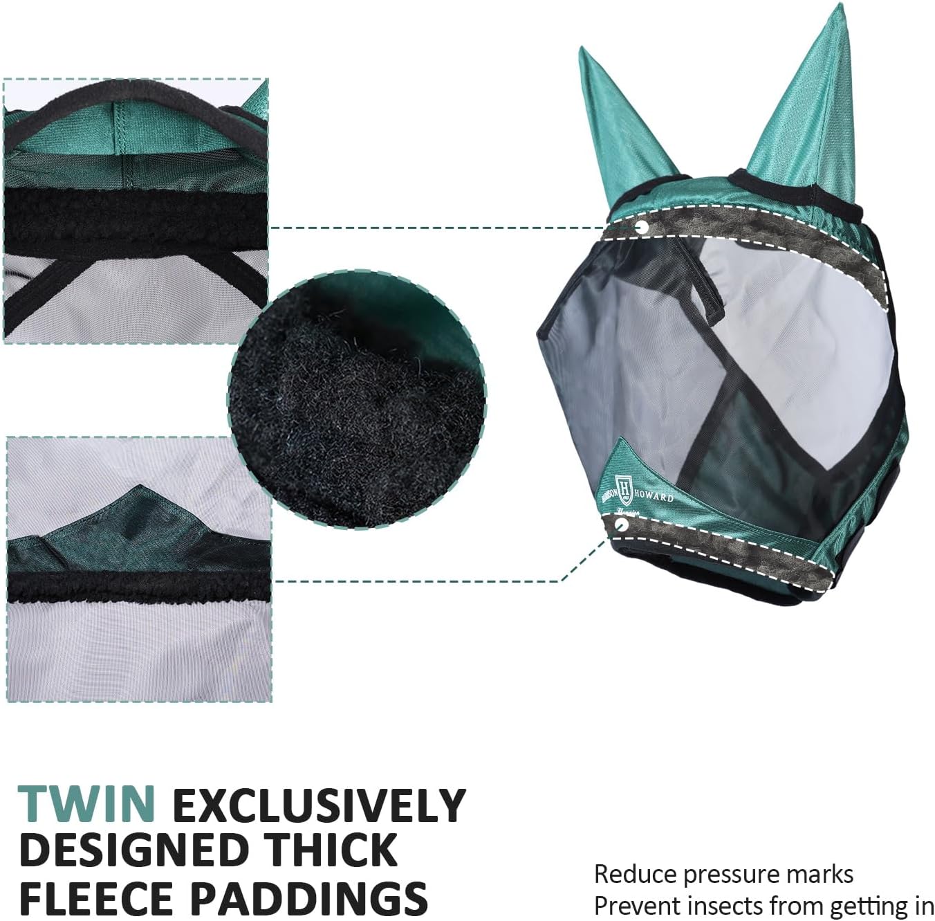 Harrison Howard Pro Luminous Horse Half Face Fly Mask Large Eye Space with Ears UV Protection for Horse Hunter Green XL