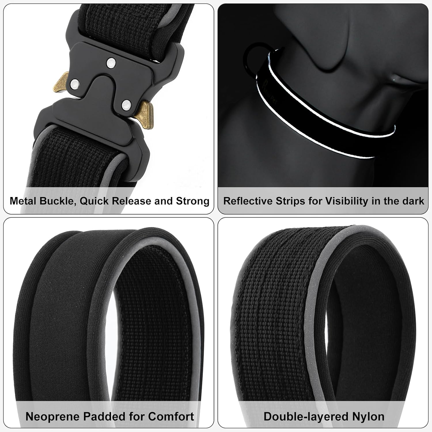 • Soft Neoprene Padded Comfort. Comfort is key for our four-legged friends. That's why our military collar features soft padding, providing your dog with comfort during walks, hikes, or training sessions. Say goodbye to chafing or discomfort – our collar keeps your pet content and secure.