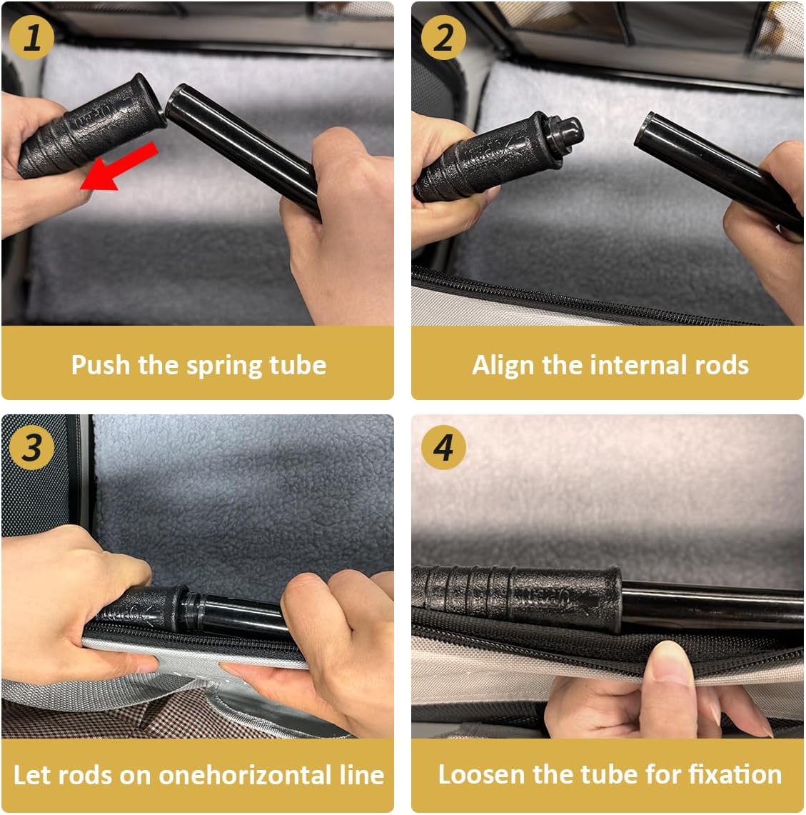 • SAFETY DESIGN- Each access has a zipper lock to prevent cats from escaping. On the side have seatbelt loops, can fix the carrier in the car. The internal metal support structure may also provide good protection for pets.