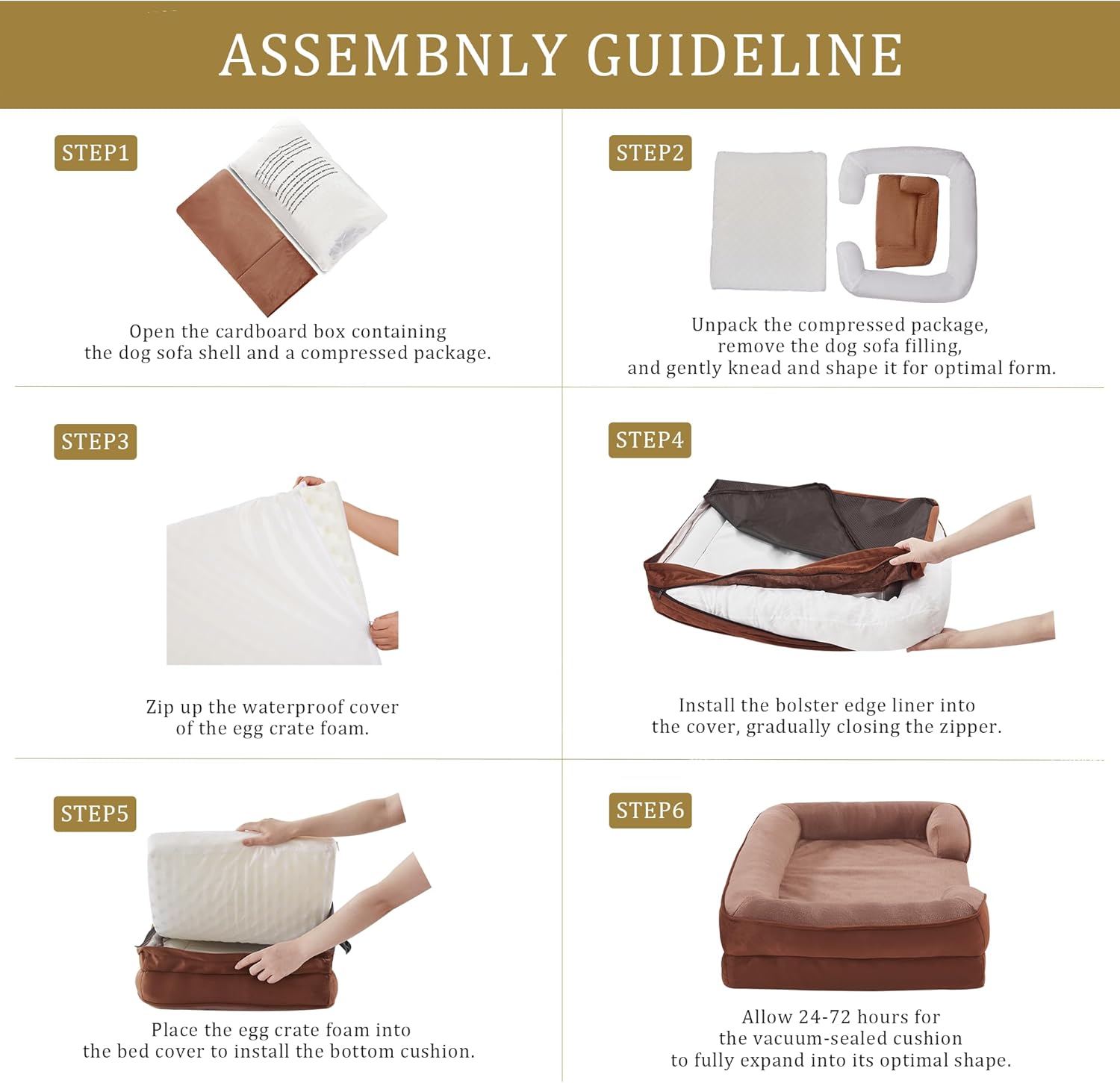 Bedfolks Orthopedic Dog Bed XXL, Waterproof Dog Sofa Bed for Giant Dogs, Egg Foam Pet Couch Bed with Removable Washable Cover and Nonslip Bottom, Brown