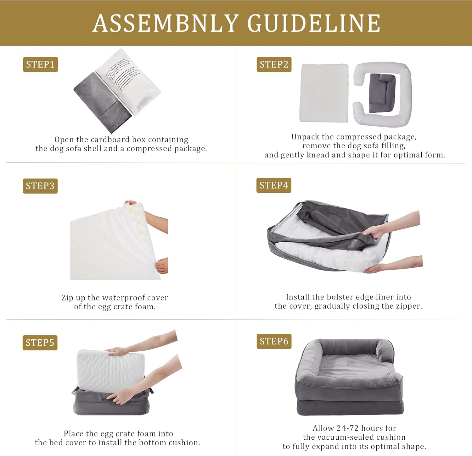 • Suitable Size: Suitable for All Breeds: 28"W x 23"L x 6.5"D; Sleeping surface: 20.5"W x 19"L (Up to 30lbs); When selecting the product size, please pay attention to the sleeping area. Please wait for 48 hours for full expansion to ensure optimal height and comfort before using.