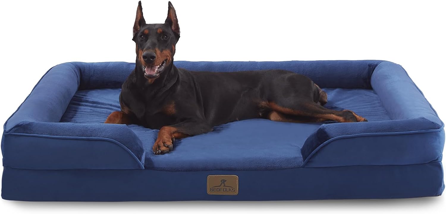 Bedfolks Orthopedic Dog Bed XXL, Waterproof Dog Sofa Bed for Giant Dogs, Egg Foam Pet Couch Bed with Removable Washable Cover and Nonslip Bottom, Navy Blue