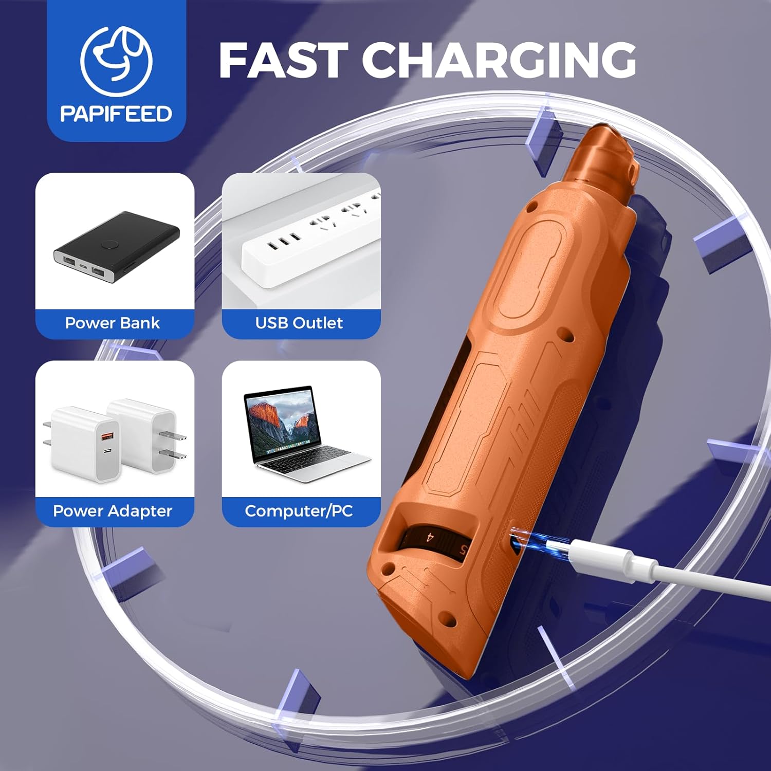 • 【Type-C Charging】The Type-C interface is compatible with mobile phone chargers, so you can charge it whenever you want, and say goodbye to the cumbersome replacement of traditional batteries. Using the PAPIFEED dog nail grinder, you can experience the convenience brought by continuous operation time and ultra-long standby time, providing an uninterrupted beauty process and flexible nail care.