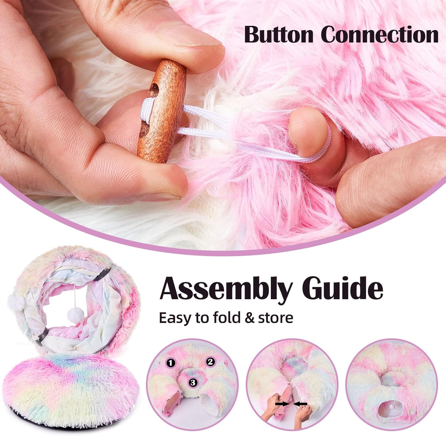 • 【Assembled into Different Shapes】Odoland cat donut tunnel is made with high-quality soft plush material. You can shape the tunnel in a straight, S-shaped or even circular form. The fur cat soft sofa can be placed inside the cat tunnel or used separately.