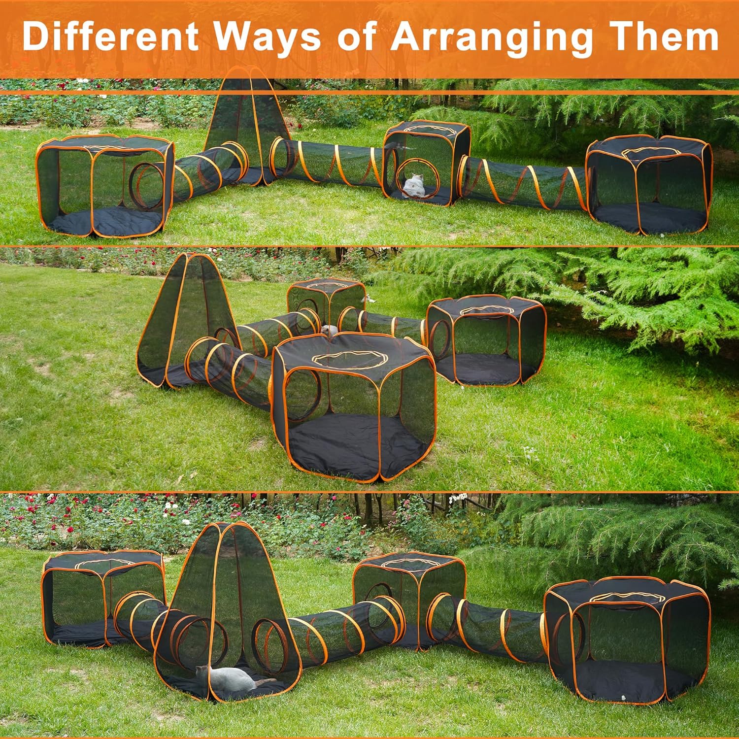 • 【Easy to Clean and Storage】 The tent and tunnel are made of mesh water-resistant, which is easy to clean and clean. After cleaning, it can be folded and put into the storage bag, which is very convenient to carry and store. It only takes 3 minutes to complete the cat play center. Build and store. Perfect for your backyard, porch, balcony outdoor camping site