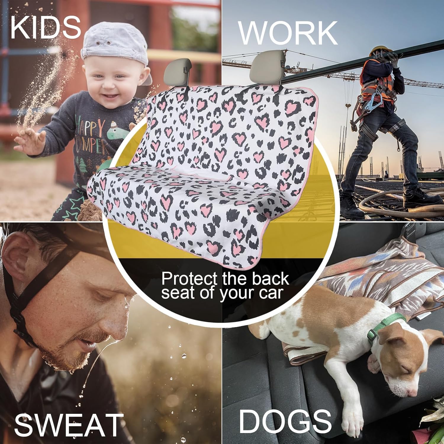 • Made From 3 Layer Material: (Front) Leopard print pattern printed on towel cloth, which gives the rear seat cover a good look and a super long life. It is perfect for leather or upholstery back seats. (Middle) Waterproof fabric that is designed to guard your backseat against moisture and sweat. (Back) This rear seat cover are designed with a non-slip backing fabric that's super comfortable and won't slip off your back seat.