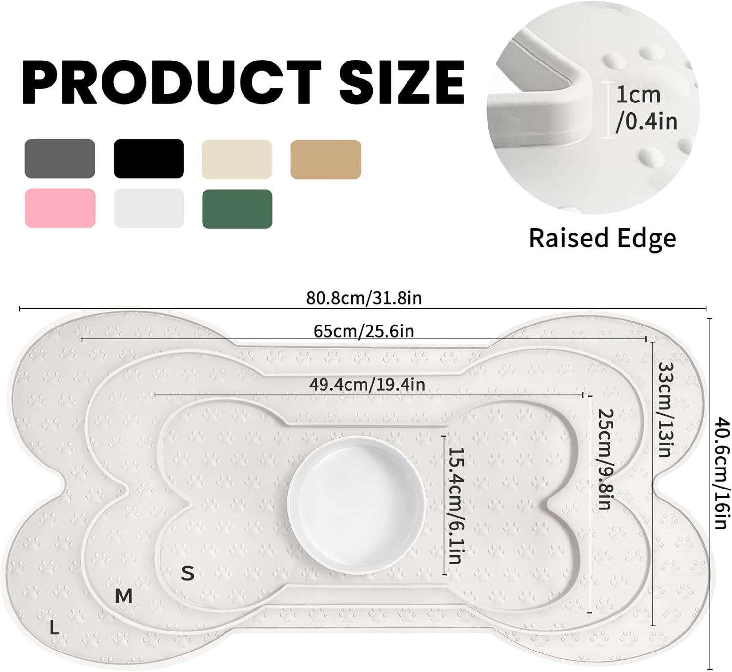 • Health Silicone Material - This pet bowl mat is non-toxic, and non-allergenic, protecting the health and safety of your pet's feeding. 31.8" x 16" holds two extra large bowls, perfect for large-sized dogs and cats to enjoy a delicious meal tray.