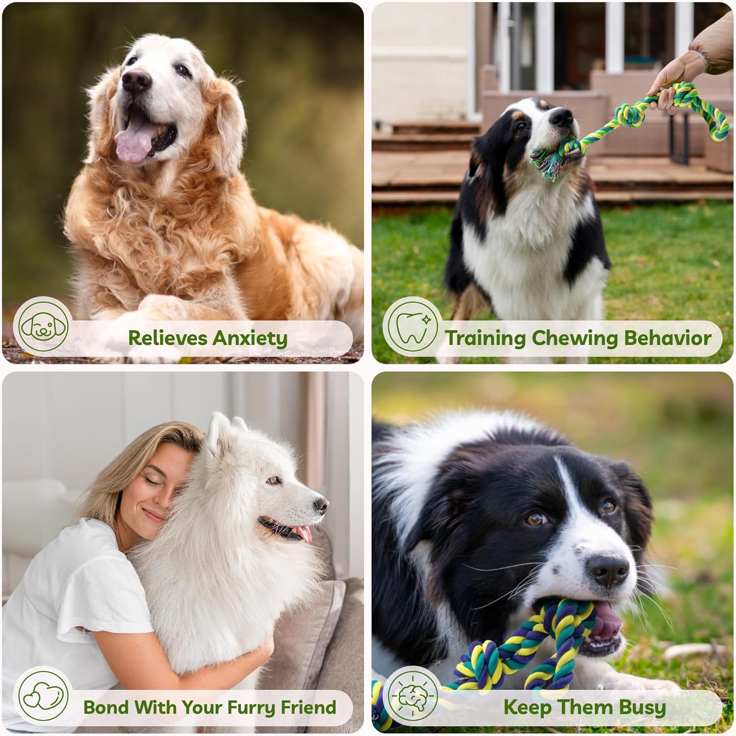 • 【SAFE DOG CHEW TOYS】100% natural cotton chew toys for aggressive chewers, comfortable, safe and odorless.Thousands of extremely fine and soft cotton fibers help dogs deeply clean their teeth while chewing, without hurt their gums and maintaining their oral health.