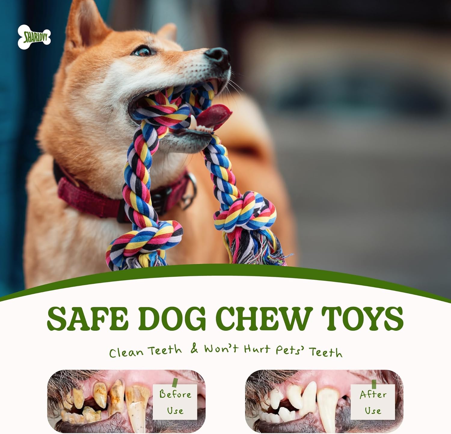 • 【Safe Dog Chew Toys】100% natural cotton chew toys for aggressive chewers, soft and comfortable, safe and odorless,cotton thread fiber deep cleaning teeth while not harming the teeth, to protect the dog's oral health. Accompany your dog to grow up, start with this SHARLOVY dog toys!