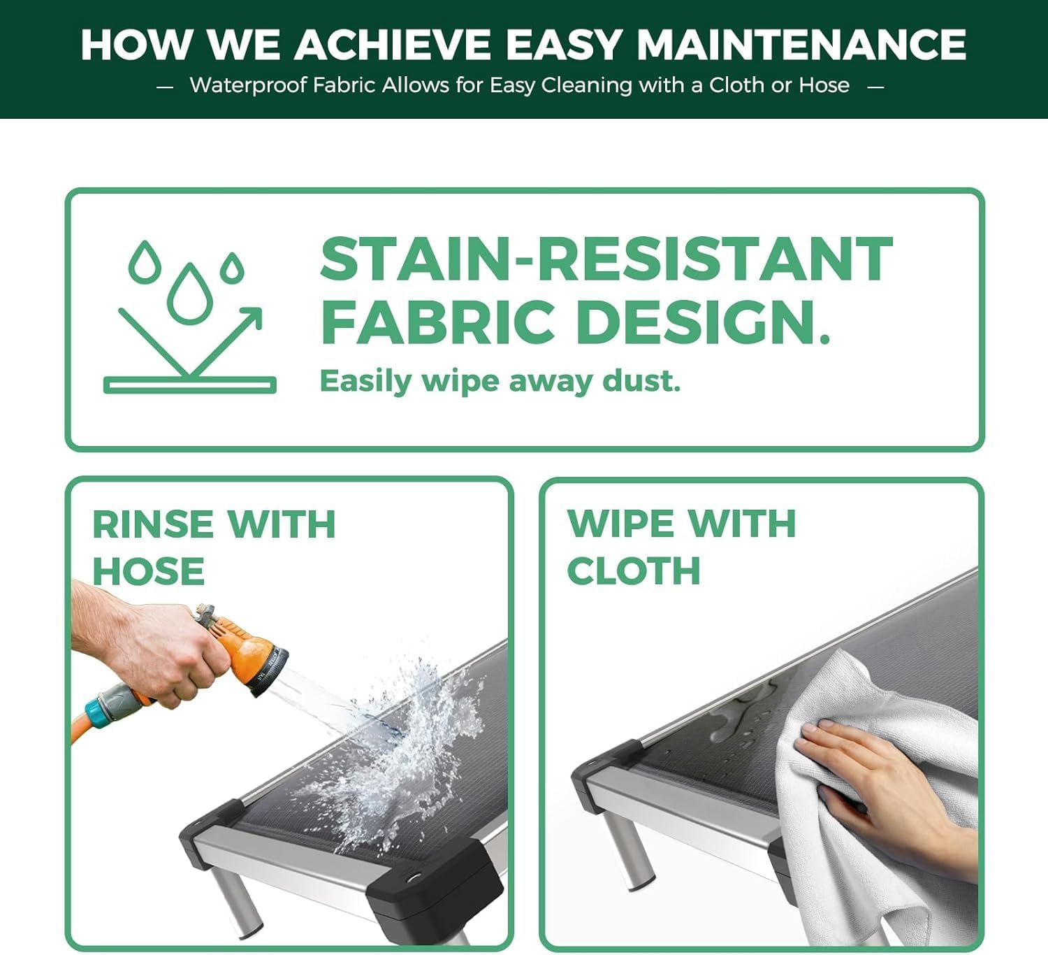 • Indestructible & Dog-Safe: Crafted with a premium aluminum alloy frame and chew-proof edges, this bed withstands aggressive chewers while keeping your pup’s gums safe and happy.