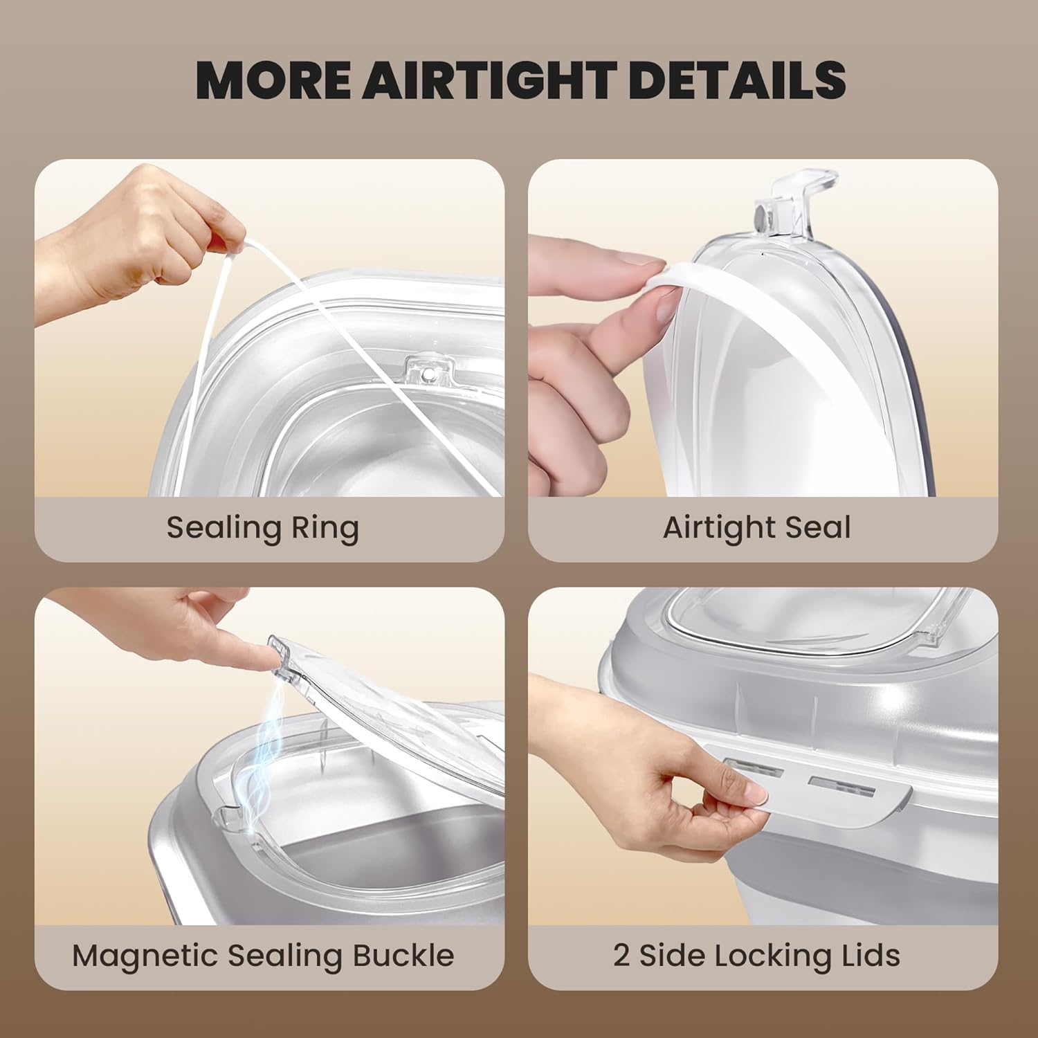 • Superior Sealing for Freshness: Our dog food storage bin is designed with a double airtight seal and 4 secured latches, ensures your pet's food stays fresh longer, free from moisture.