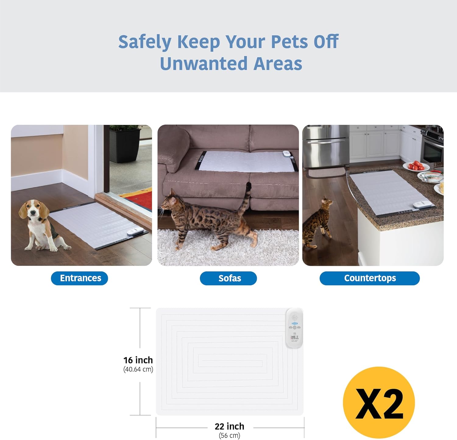 SVD.PET (2-Pack Pet Training Mat with Tester, Pet Shock Pad, Dogs & Cats Electronic Repellent mat for Indoor, 3 Training Modes, 5 Levels, Pet Safe Mode (White controler 22" X 16")