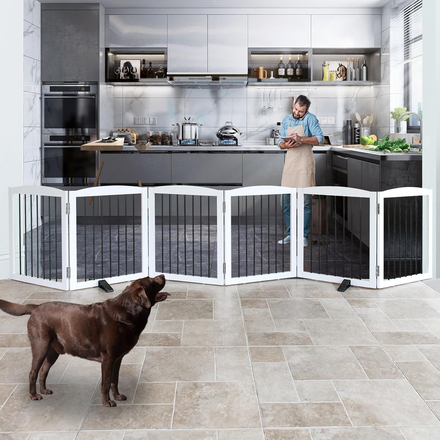 • 【6 Panels】Dog gate is built with 6 separate panels, secured together with sturdy stainless steel hinges.