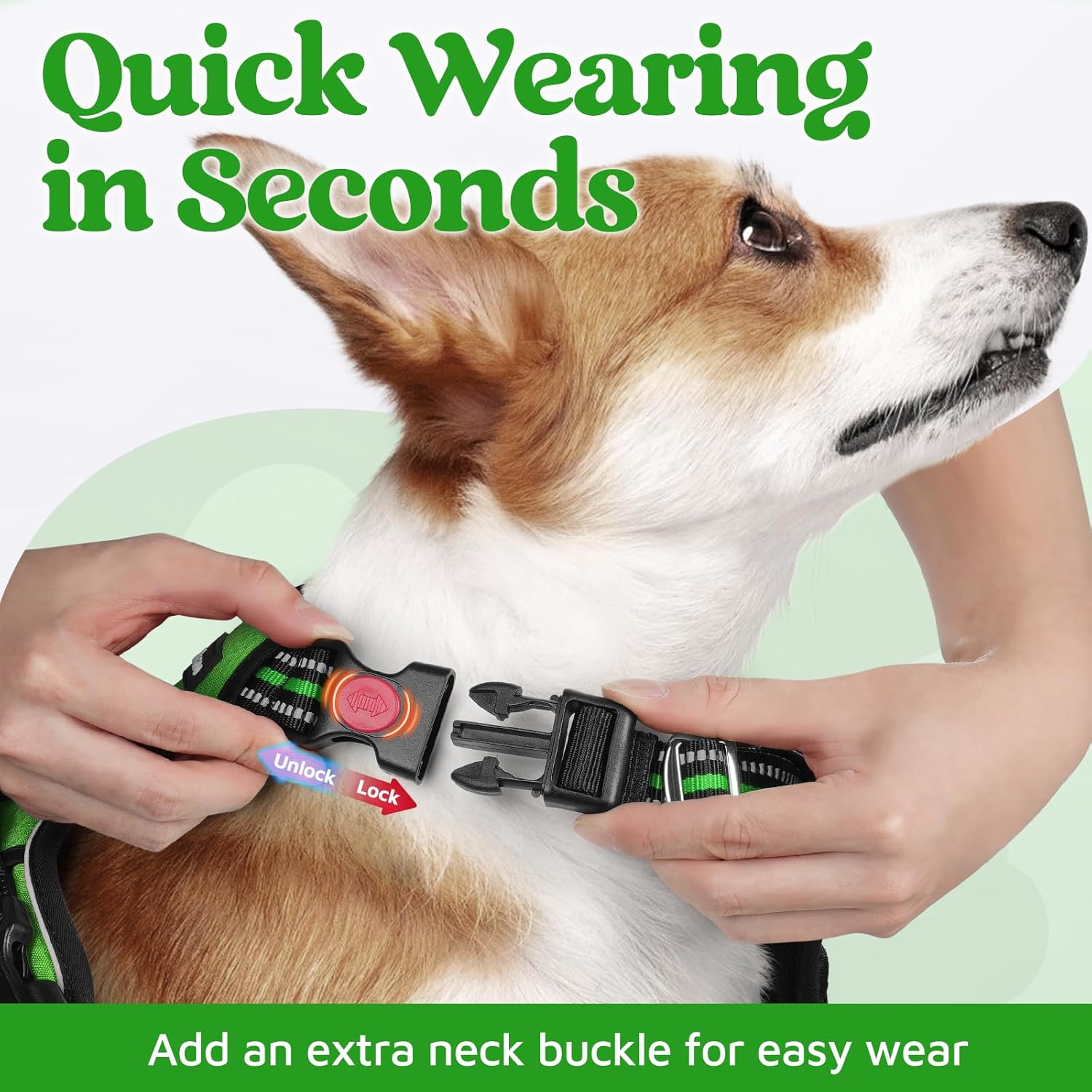 • Put on in Seconds: Featuring 3 buckles, this no-pull dog harness can be effortlessly put on and taken off. Say goodbye to the hassle of sliding a harness over your playful dog's head—experience a smooth and time-saving process