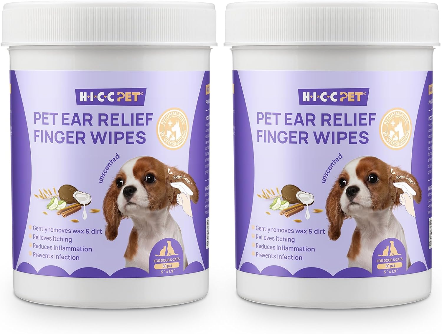 HICC PET Dog Ear Wipes Finger 100 Count Dog Ear Cleaner Wipes for Dogs & Cats, Dog Ear Infection Treatment to Relieve Ear Itching & Inflammation, Remove Ear Wax, Dirt, Smelly - Unscented