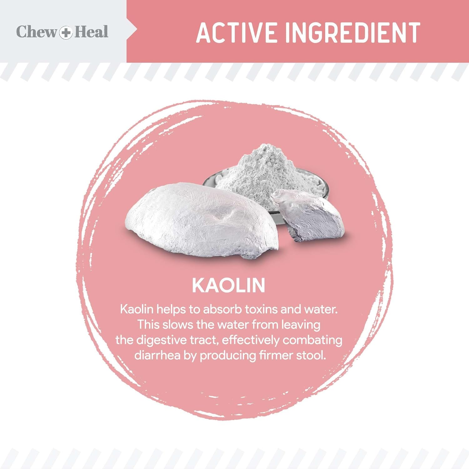 • Kaolin helps absorb water to make the stool more firm, reducing diarrhea. It also helps absorb toxins and remove them from the gut.