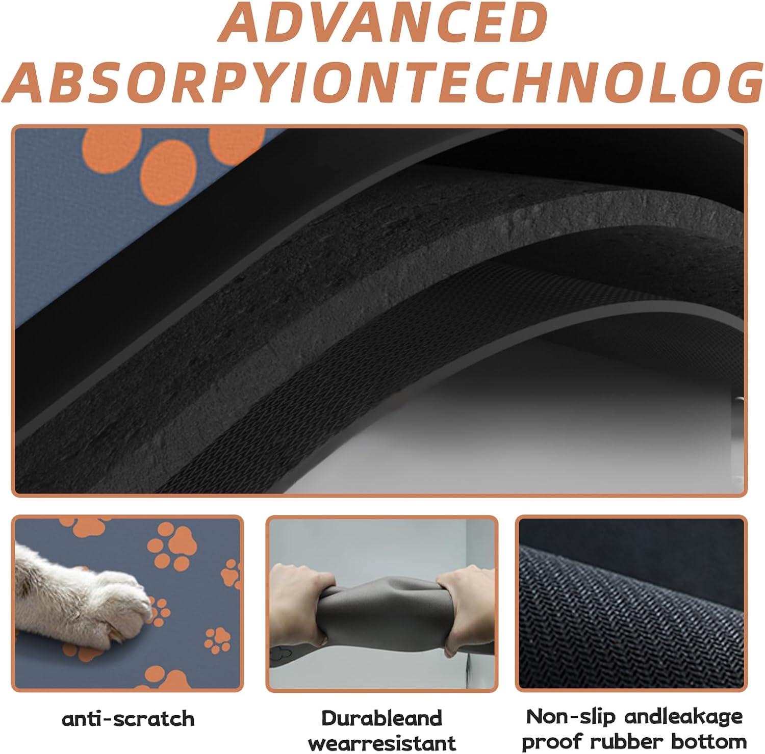 18"×30" Dog Food Mat-Absorbent Dog Mat for Food and Water, No Stains Quick Dry Cat Dog Food Bowl Mat Non Skid Dog Feeding Mat with Footprints for Messy Drinkers Blue