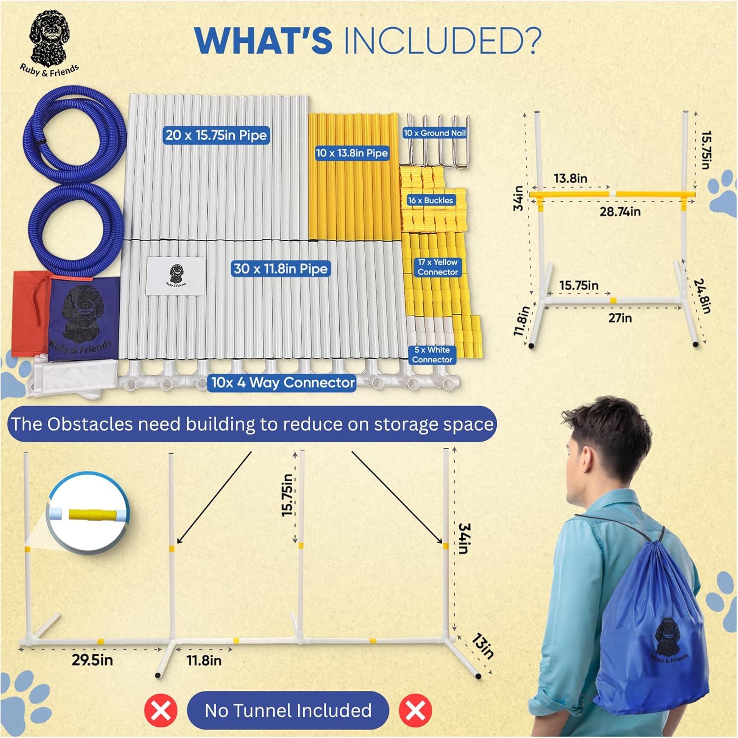 Ruby & Friends Dog Agility Equipment: Create 6 Sturdy Obstacle Courses with Our Dog Agility Course Backyard Set, Including Weave Poles, Ring Jumps and Hurdles with This Obstacle Course for Dogs