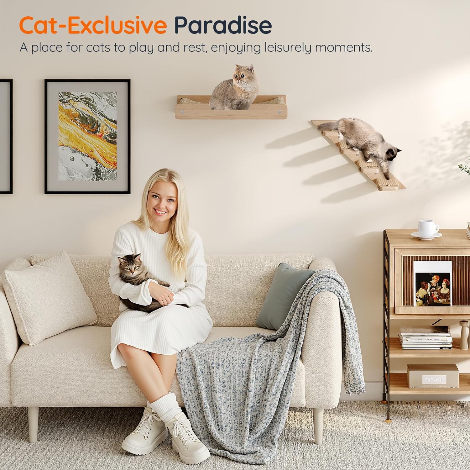 • Easy Assembly: Our cat wall shelf, with its simple structure and including two types of expansion screws plus a level, ensures precise placement and quick installation. For a solid oak construction, a power drill is recommended for a secure setup