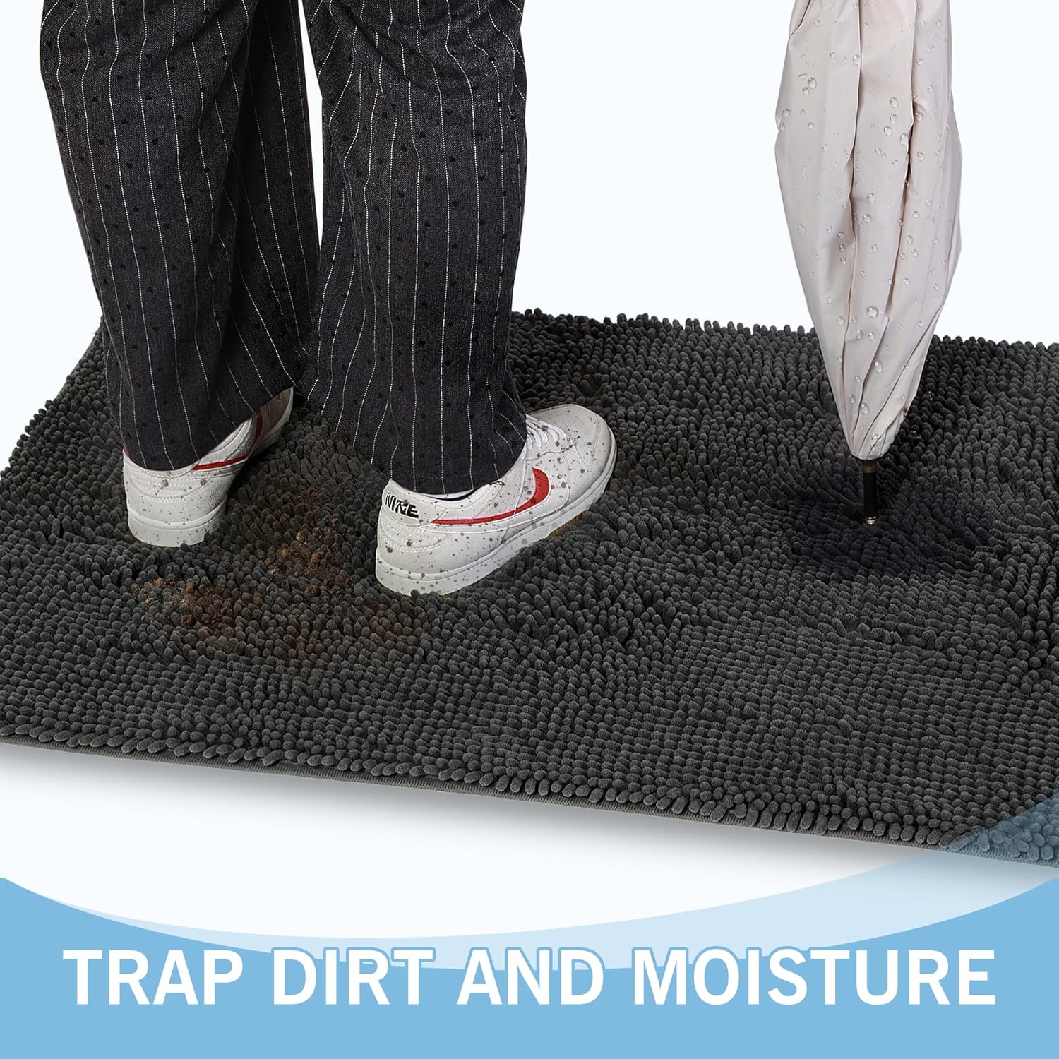 • Absorbs Moisture and Trap Dirt: With about 1" microfiber pile, this chenille dog mat for muddy paws absorbs excess moisture and effectively trap dirt. With our front door mat, your shoes will be spotless from water, dust, grit, mud, sand, sleet, grass, slush, rain, or snow when entering your house. A smart pick for a doormat that greets guests and traps debris, keeping your home's first impression shiny and clean.